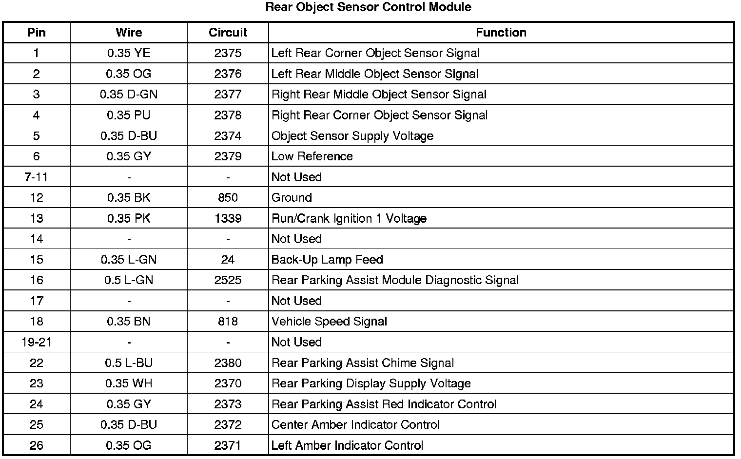 Rear Object Sensor Control Module