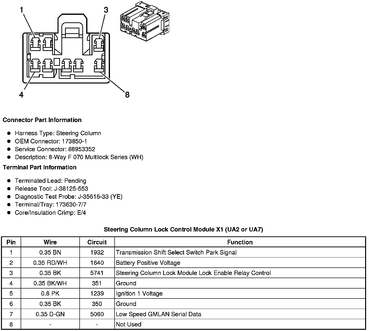 Steering Column Lock Control Module X1 (UA2 or UA7)