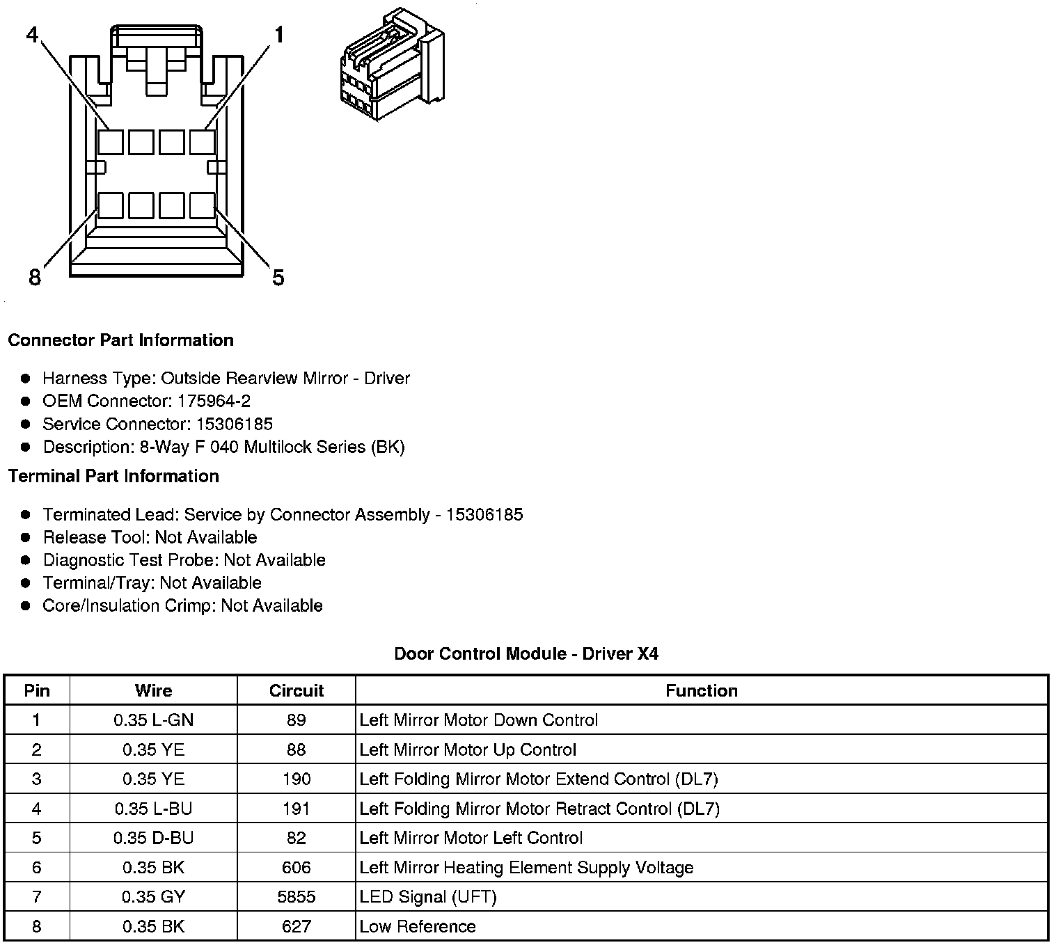 Home >> Cadillac >> 2011 >> STS AWD V6-3.6L >> Repair and Diagnosis >> Diagrams >> Connector Views >> Doors >> Door Module