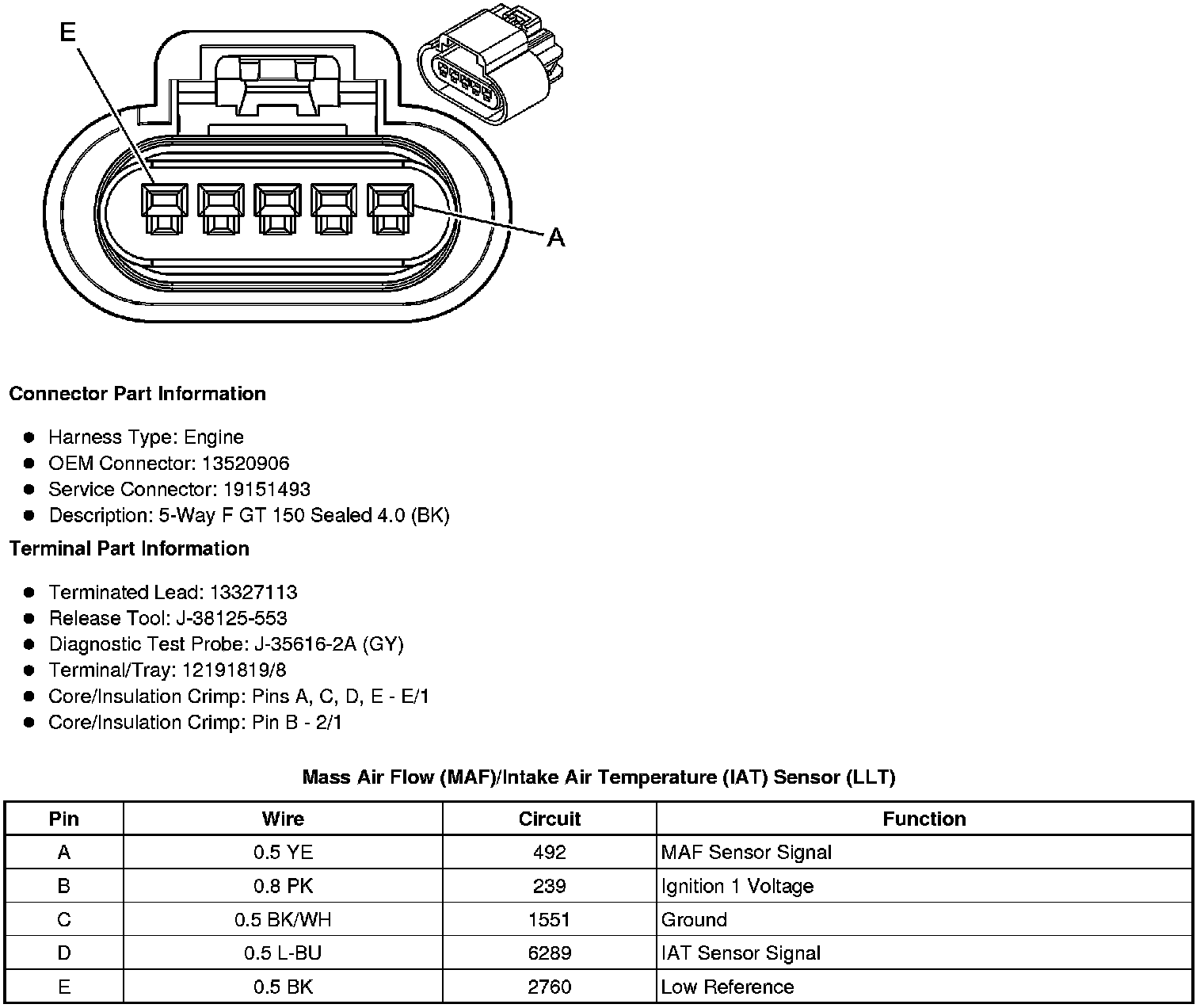 Mass Air Flow (MAF)/Intake Air Temperature (IAT) Sensor (LLT)