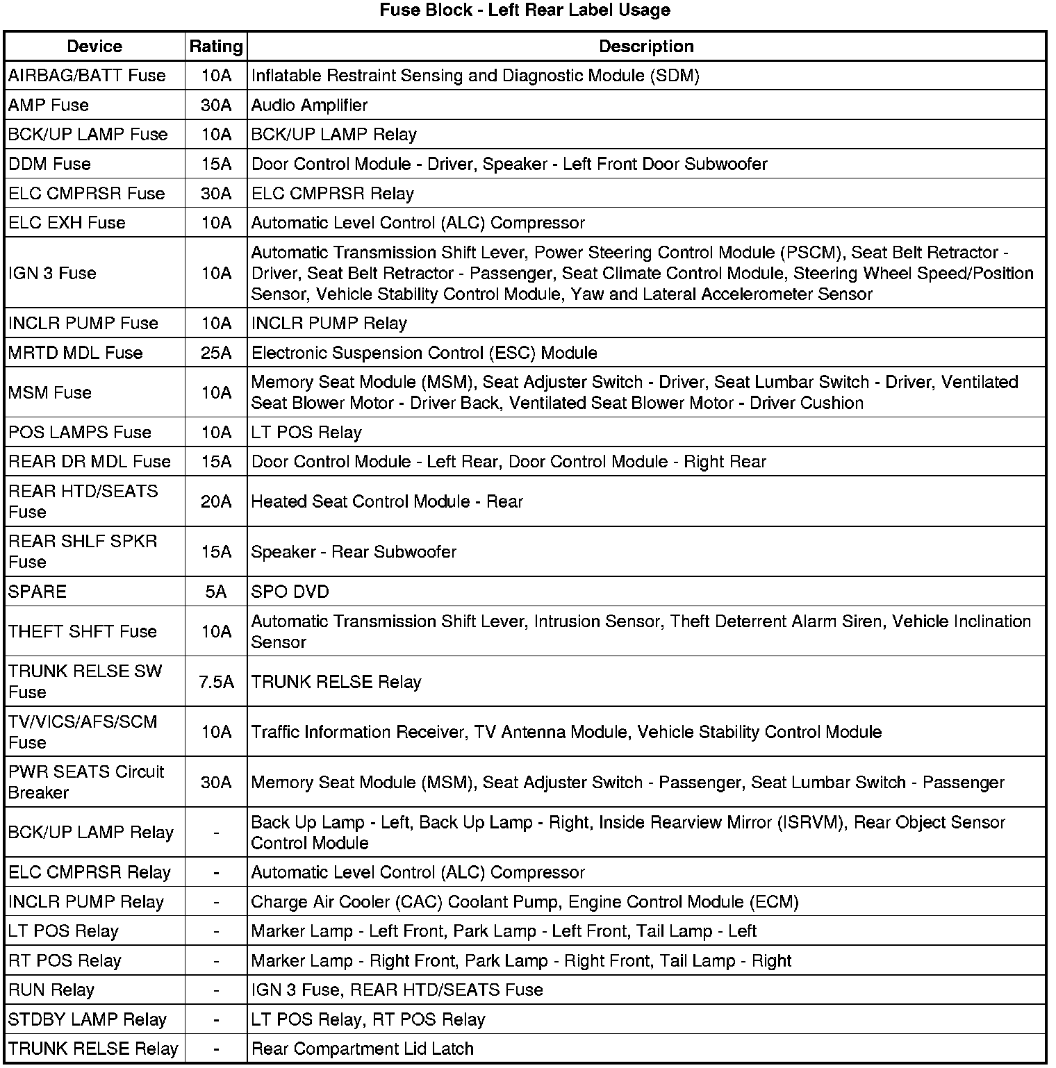 Fuse Block - Left Rear Label