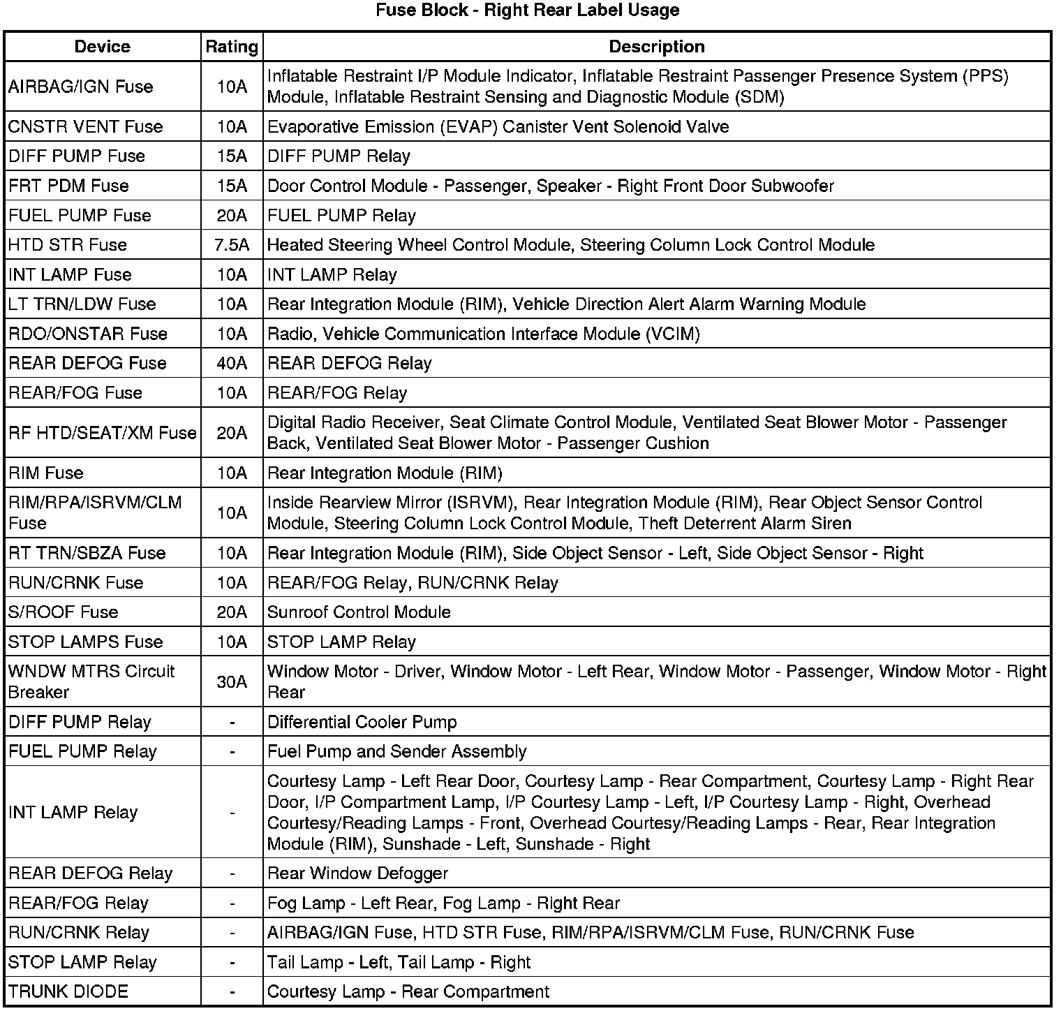 Fuse Block - Right Rear Label
