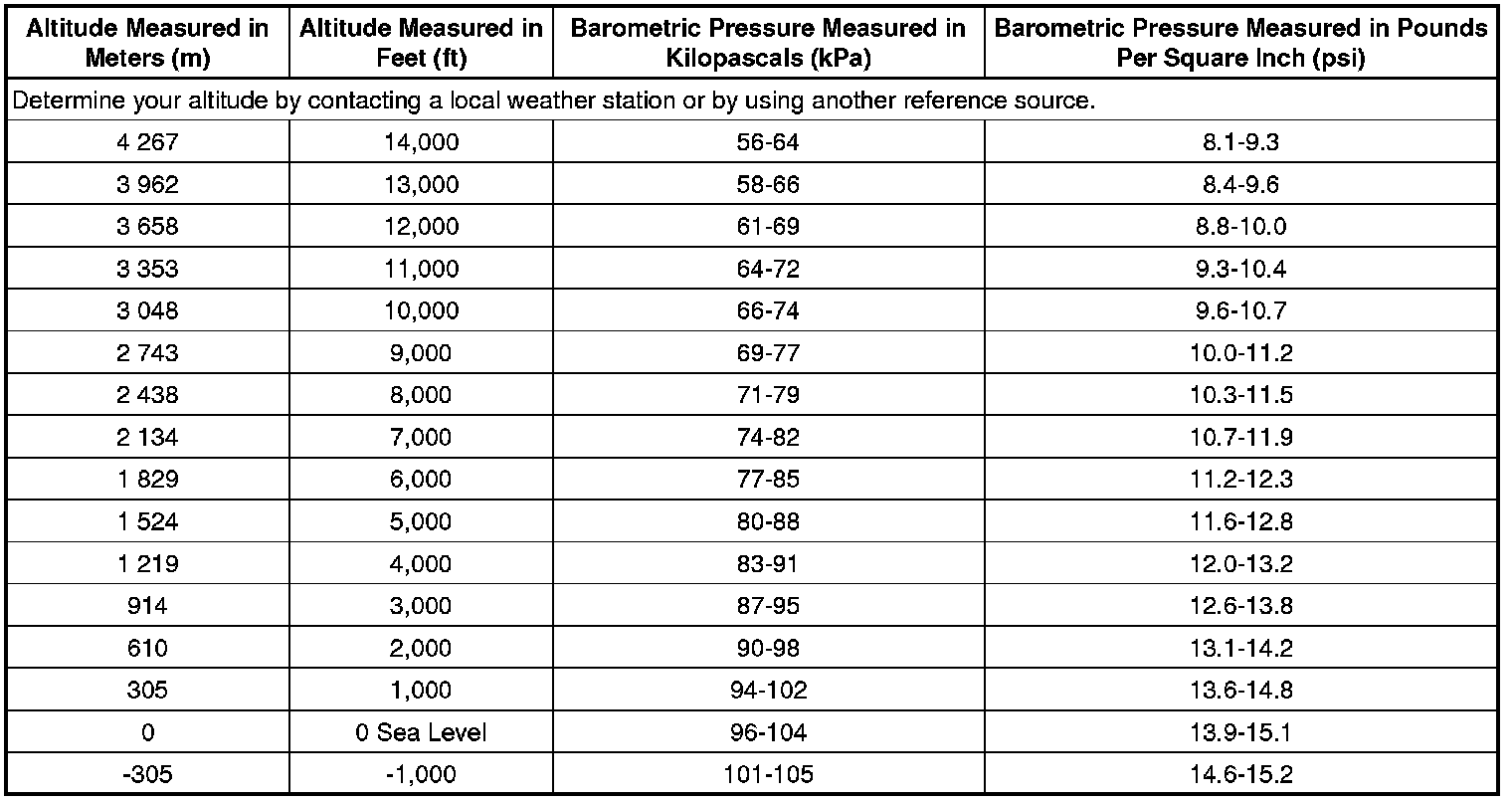 Altitude Versus Barometric Pressure