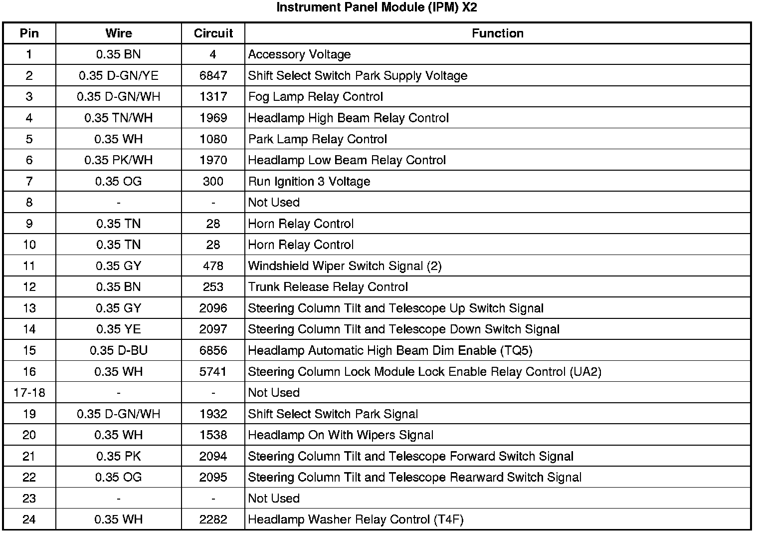 Instrument Panel Module (IPM) X2