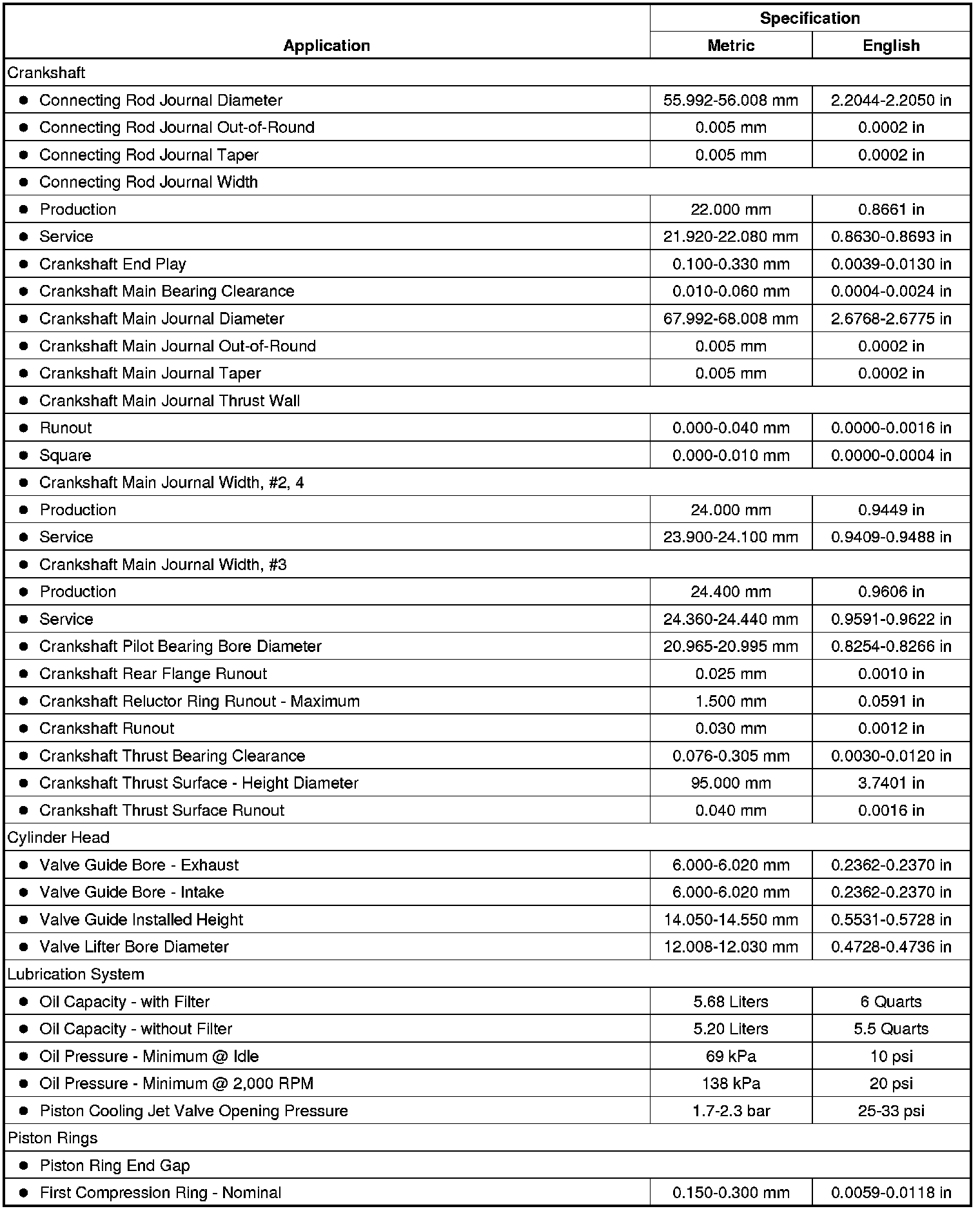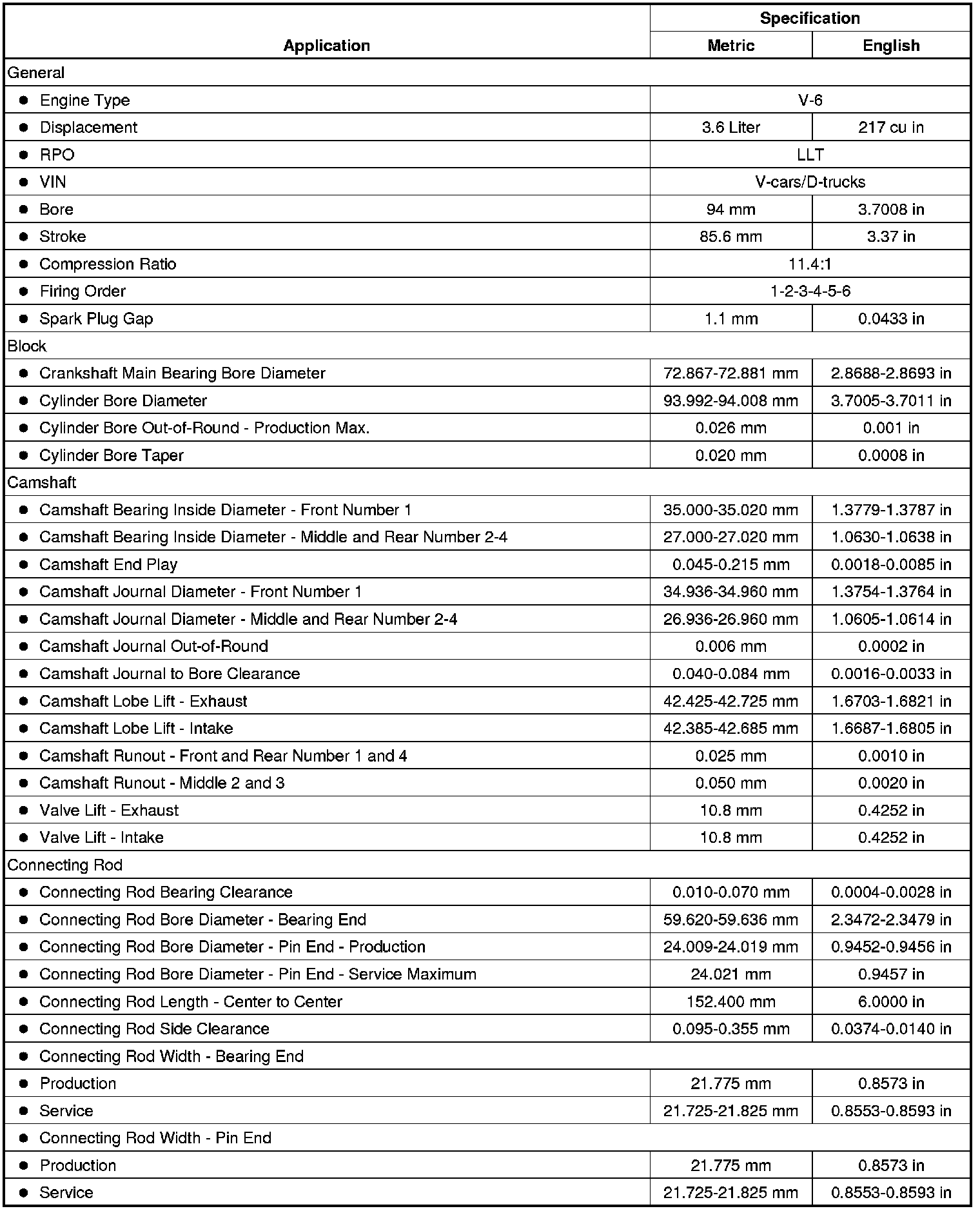 Engine Mechanical Specifications (LLT)