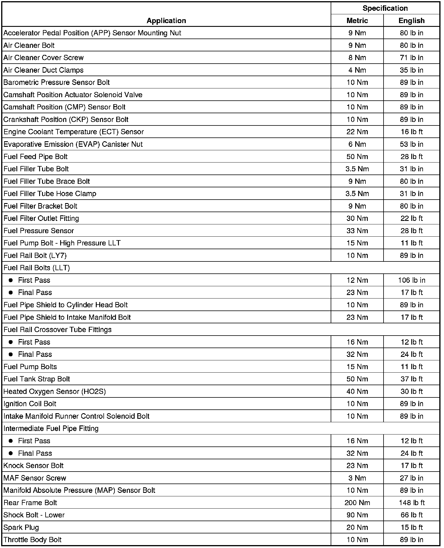Fastener Tightening Specifications