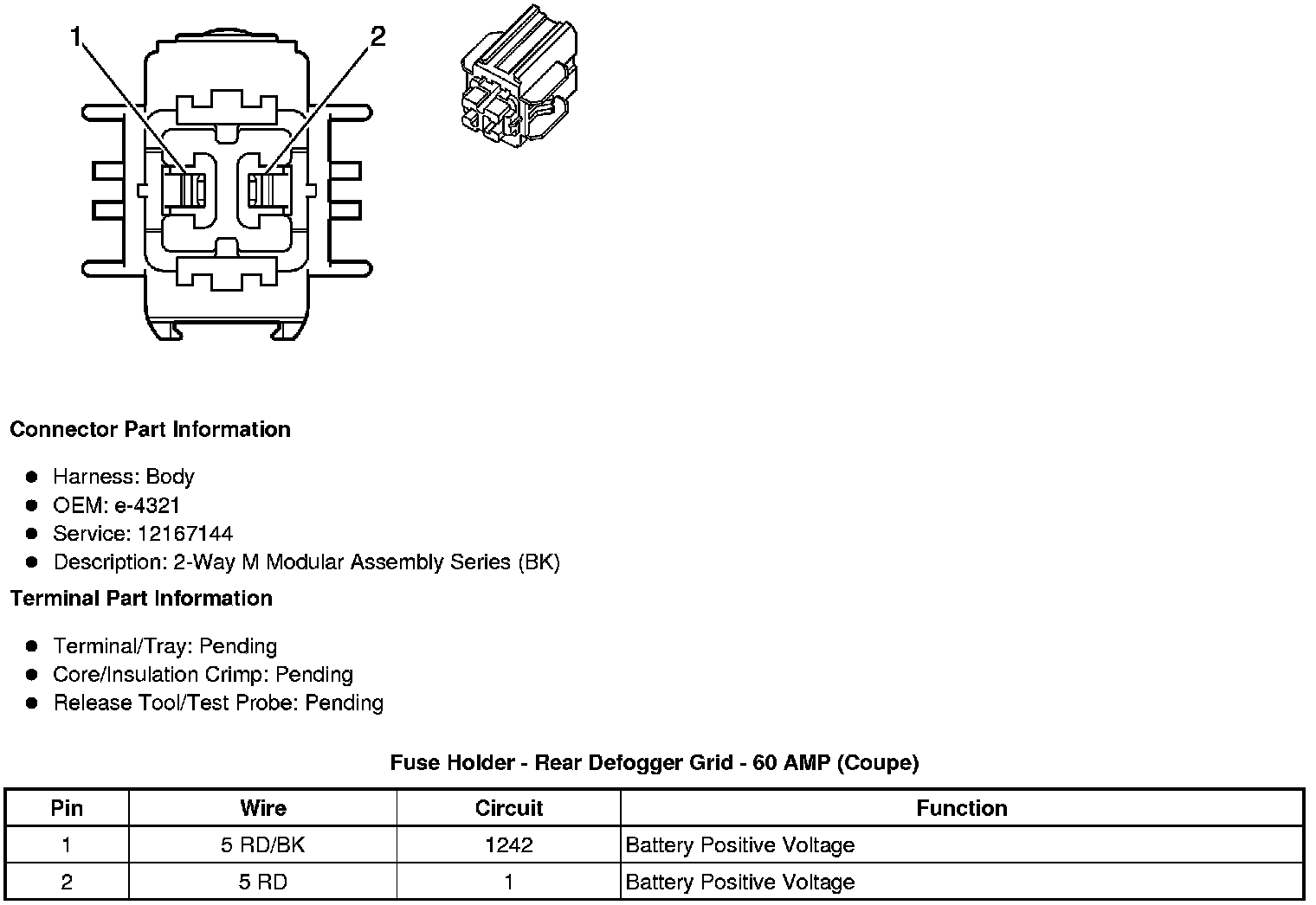 Fuse Holder - Rear Defogger Grid - 60 AMP (Coupe)