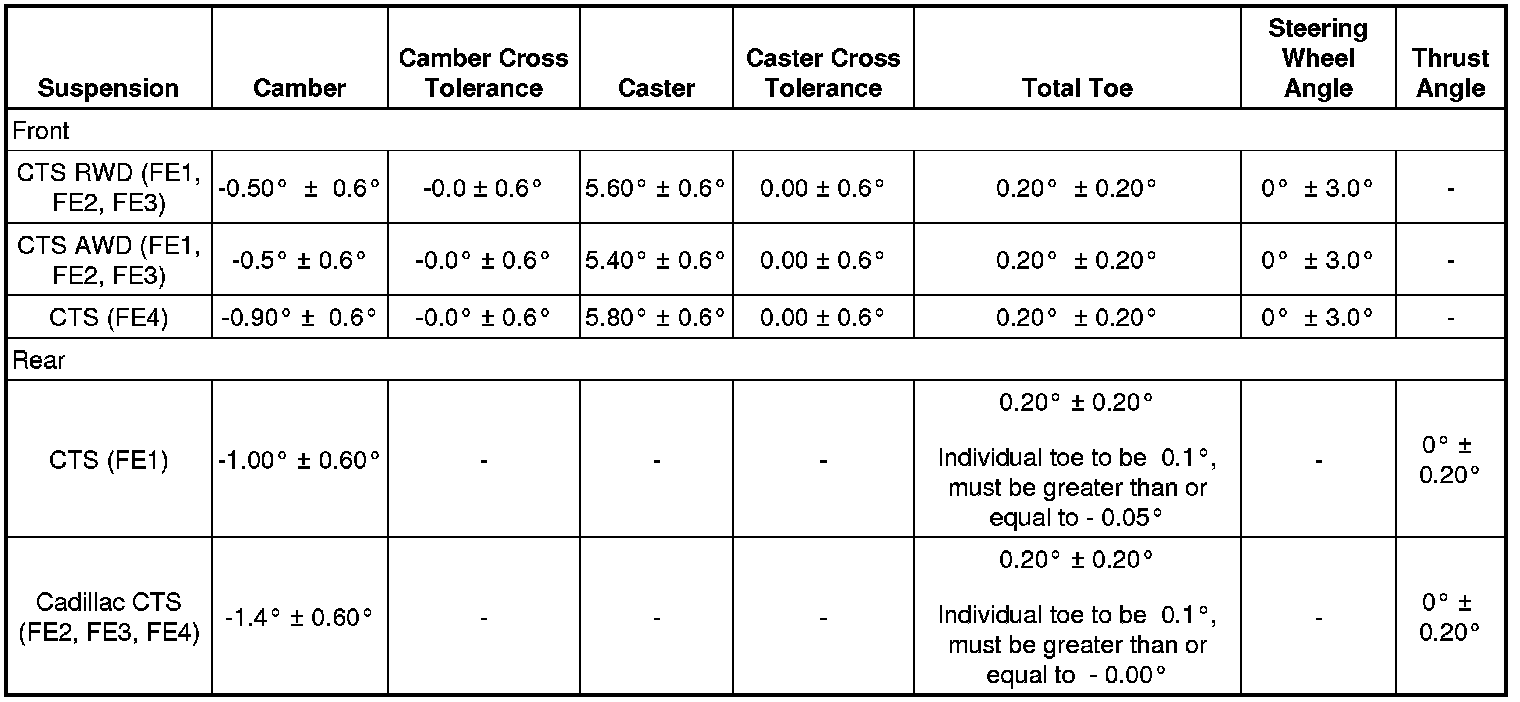 Wheel Alignment Specifications