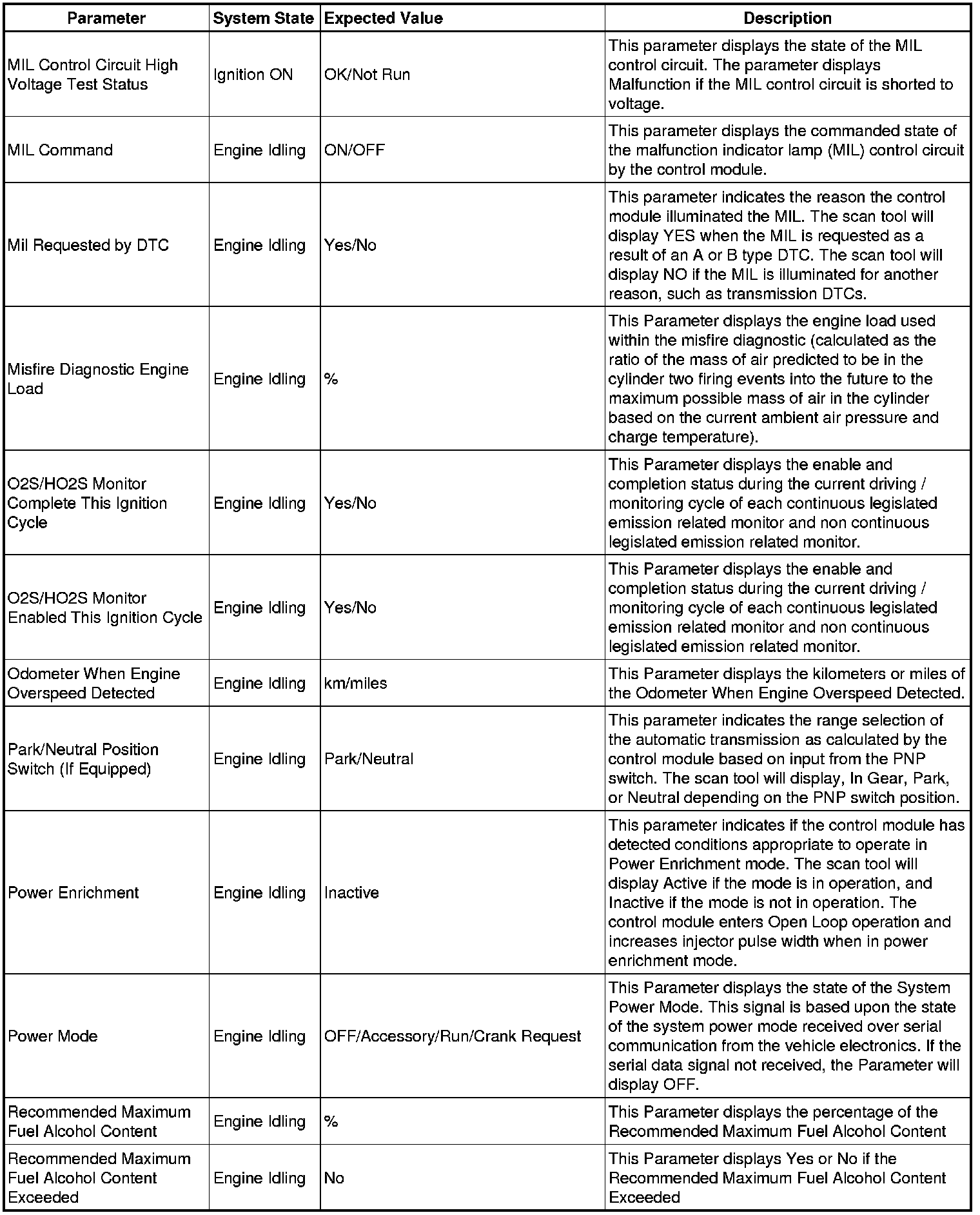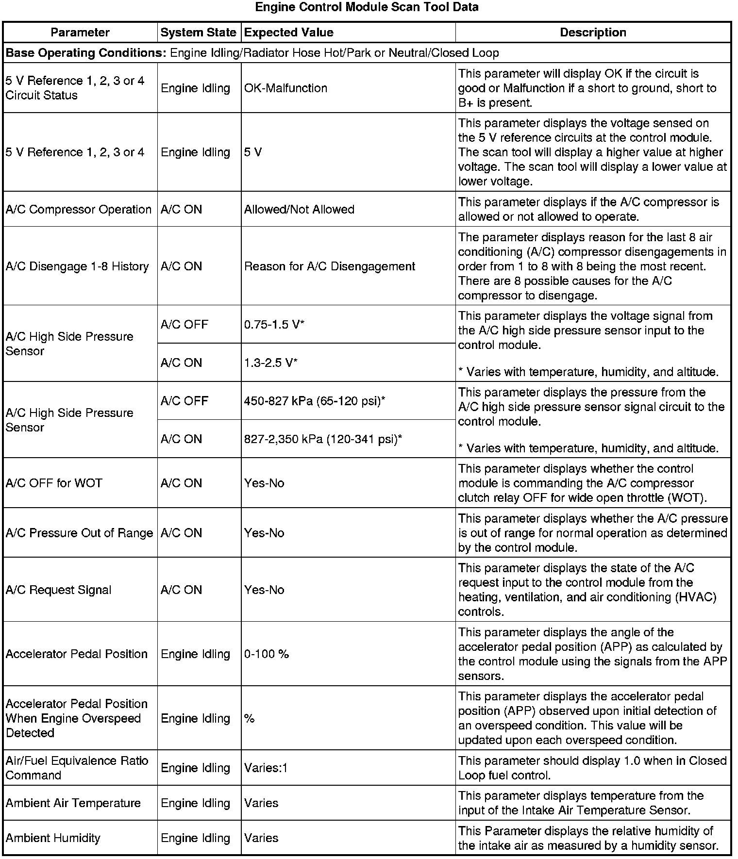 The Engine Control Module Scan Tool Data List contains all engine-related parameters that are available on the scan tool. The list is arranged in alphabetical order. A given parameter may appear in any one of the data lists, and in some cases may appear more than once, or in more than one data list in order to group certain related parameters together.