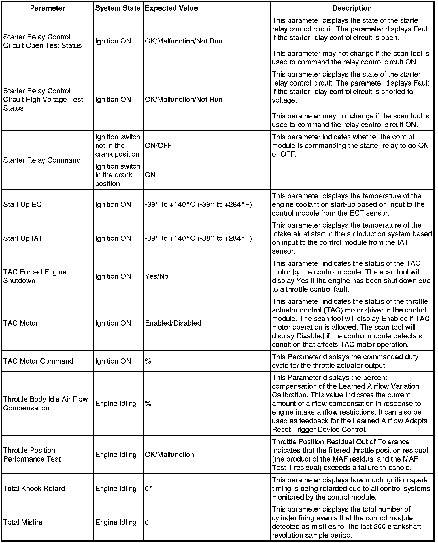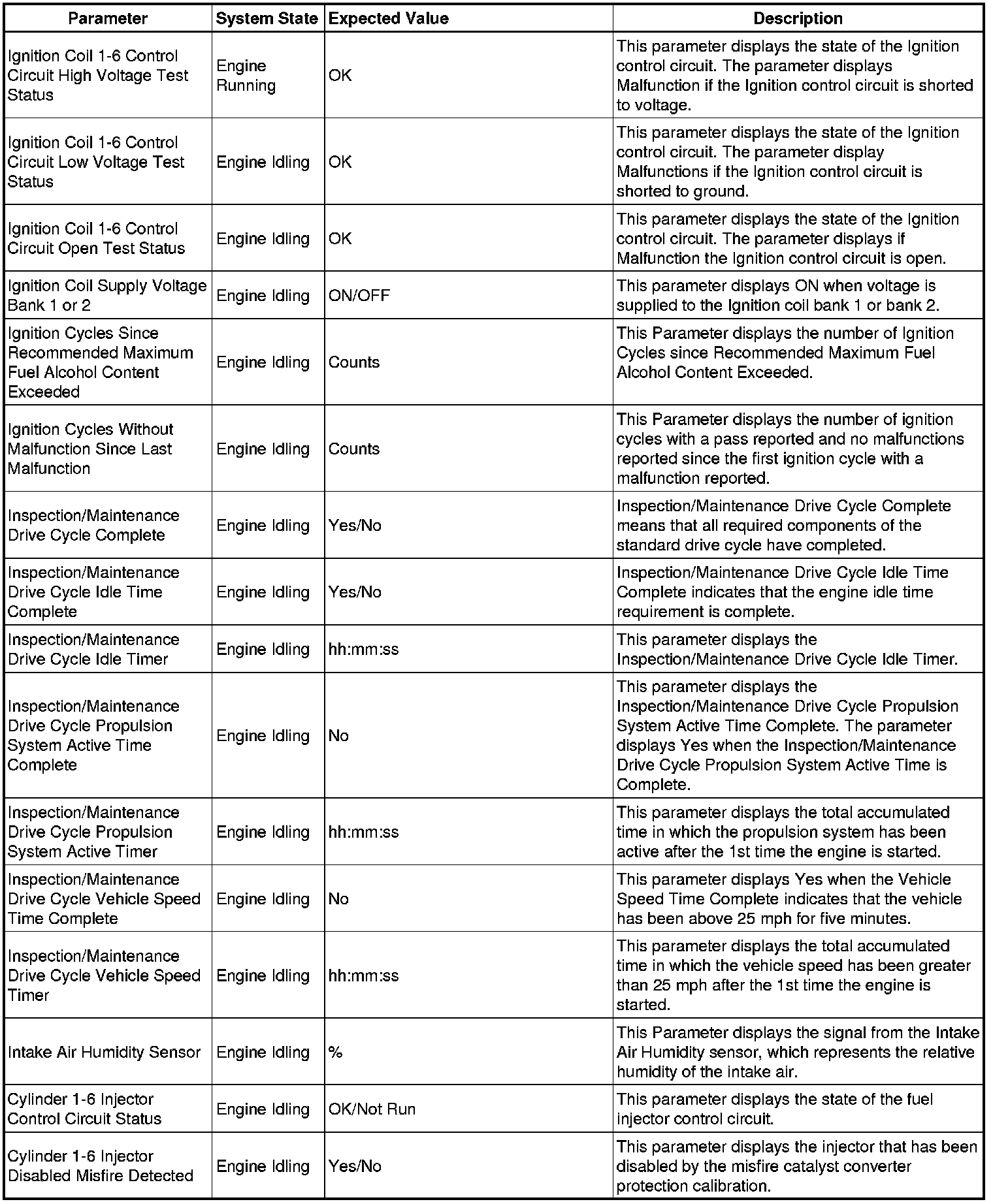 Only the parameters listed below are referenced in this service manual for use in diagnosis.
