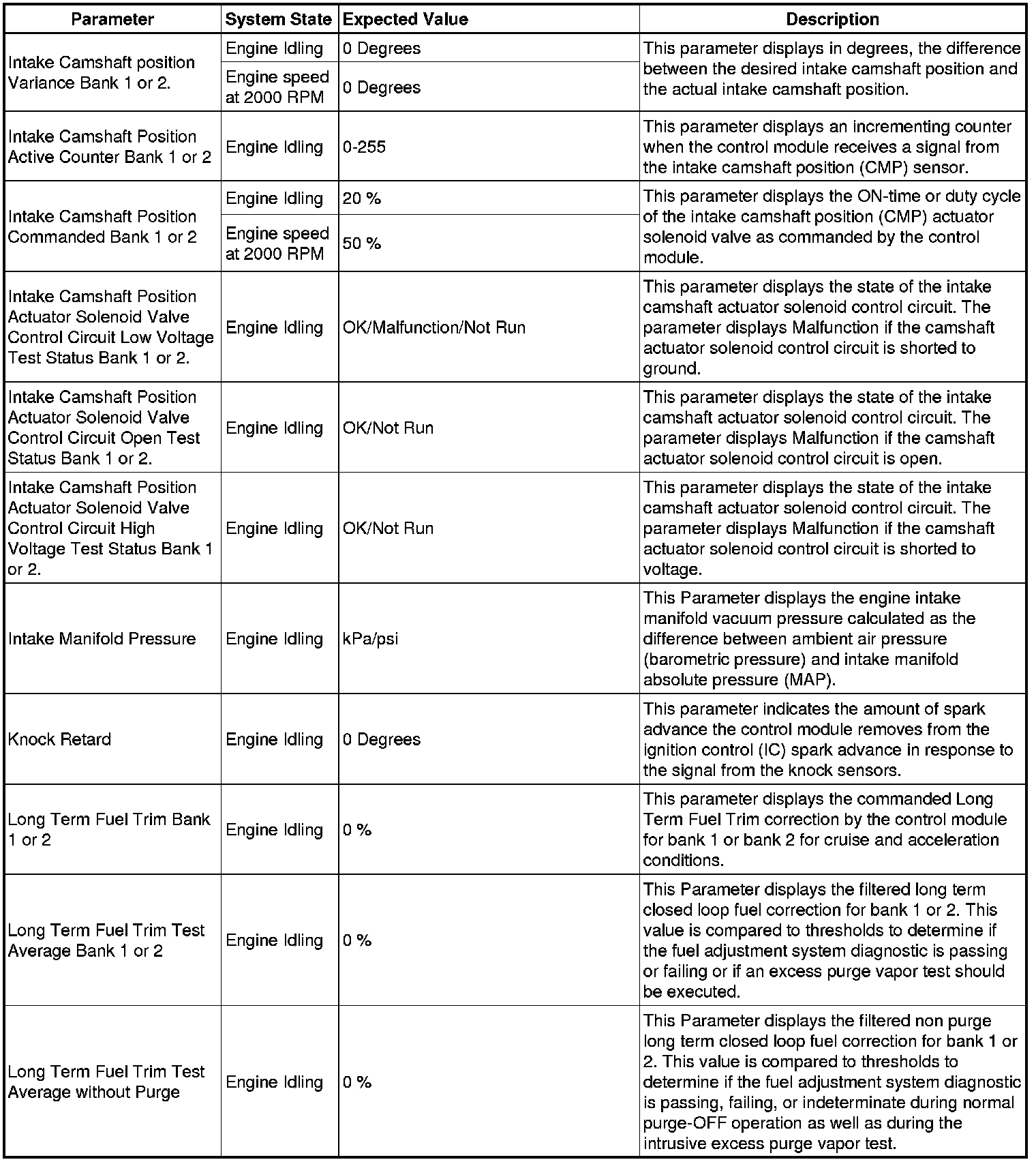 The scan tool values from a properly running engine may be used for comparison with the engine you are diagnosing. The Engine Scan Tool Data List represents values that would be seen on a normally running engine.