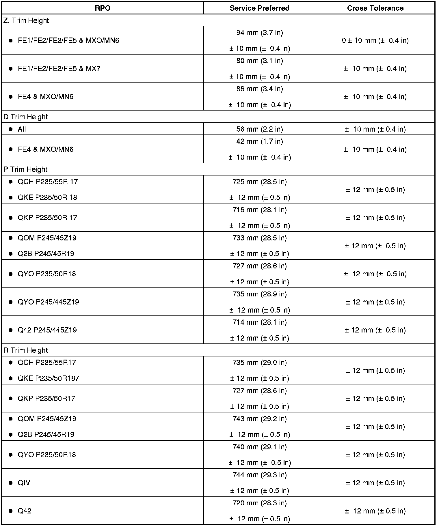 Trim Height Specifications