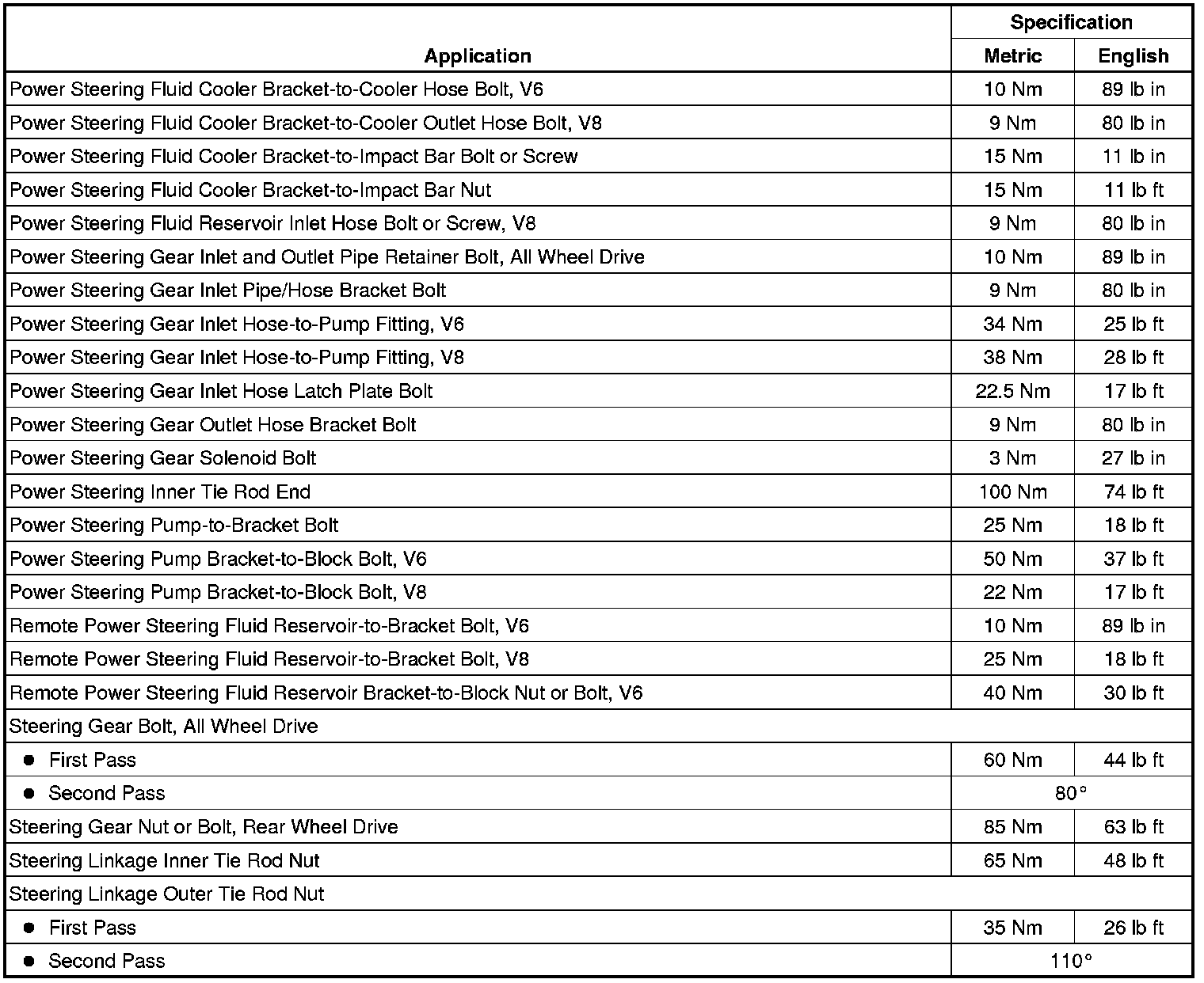 Fastener Tightening Specifications