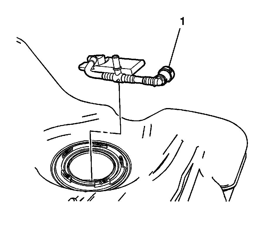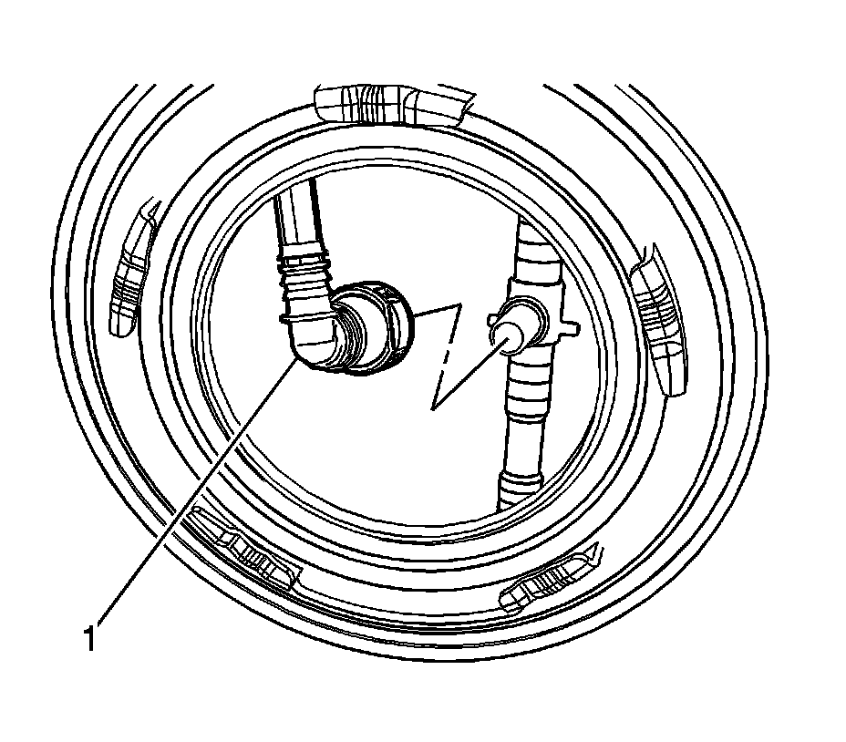 6. Disconnect the fuel transfer hose quick connect fitting (1). Refer to Plastic Collar Quick Connect Fitting Service Procedures.