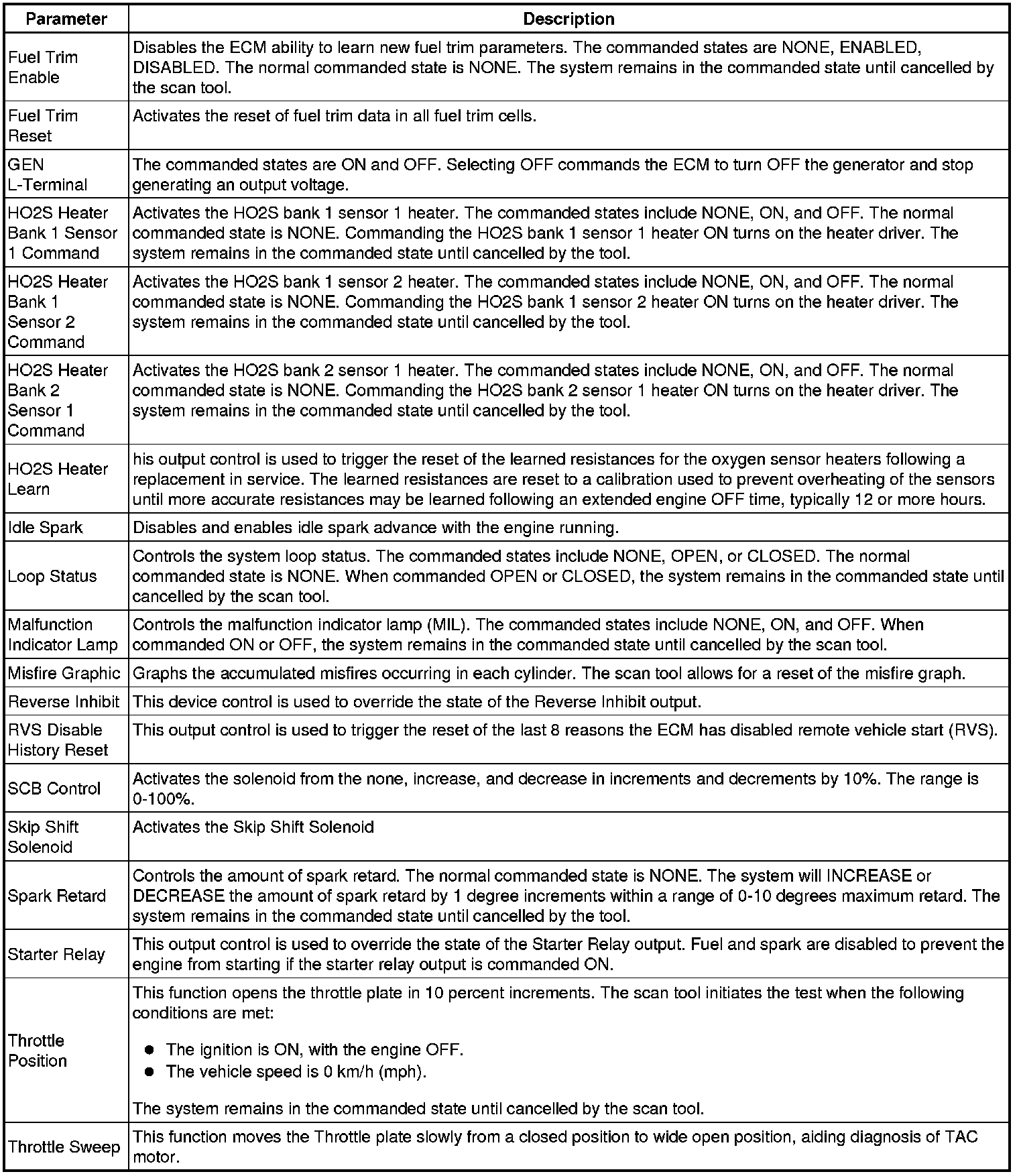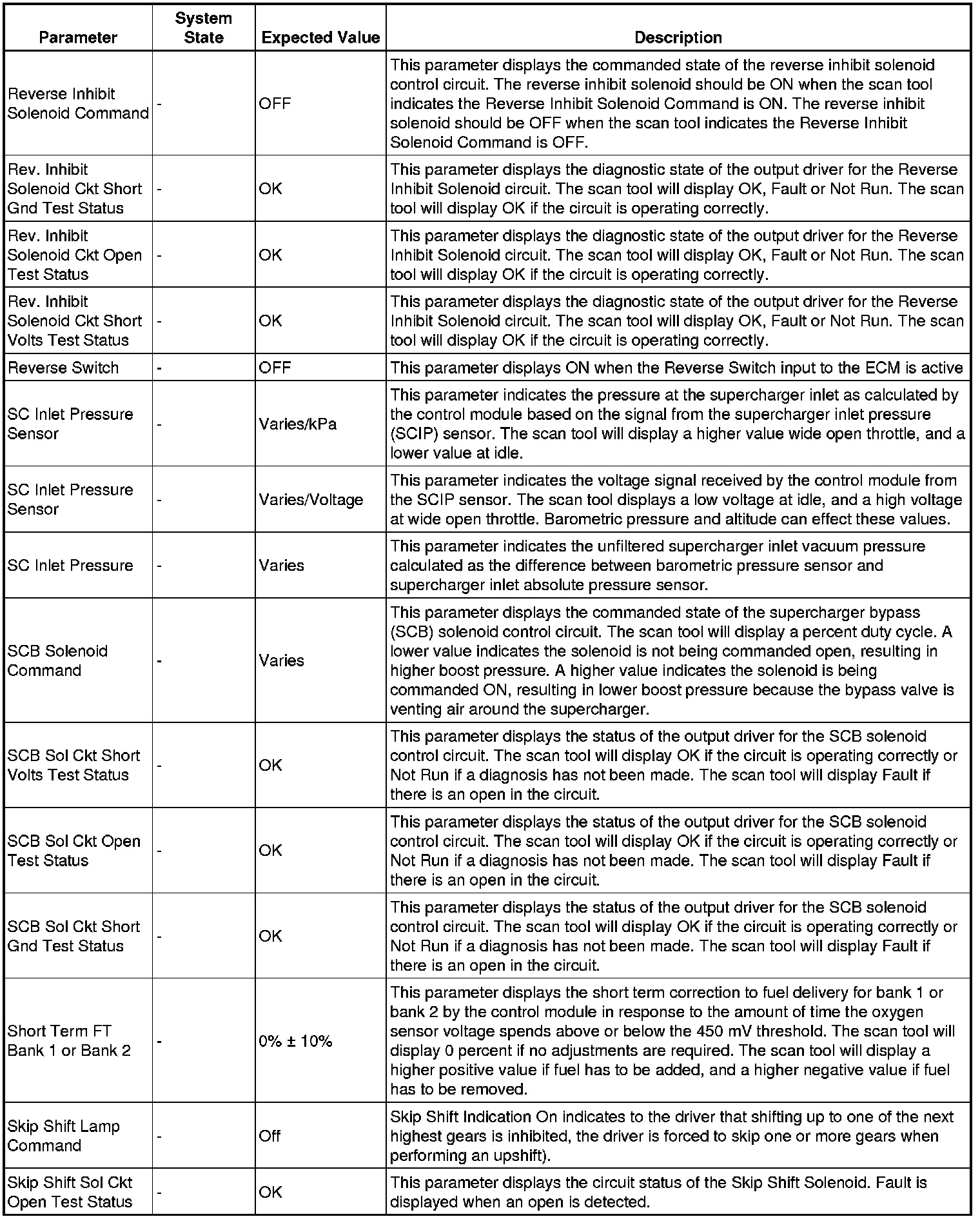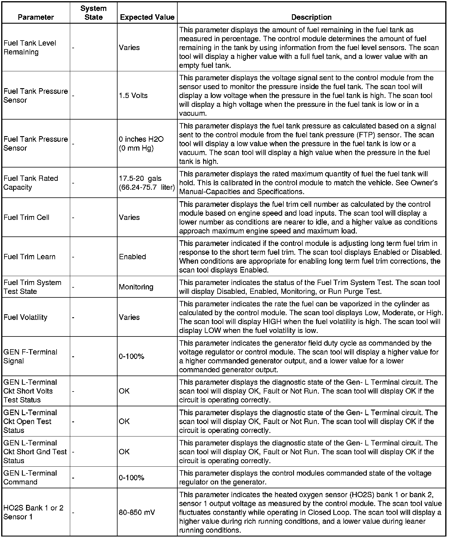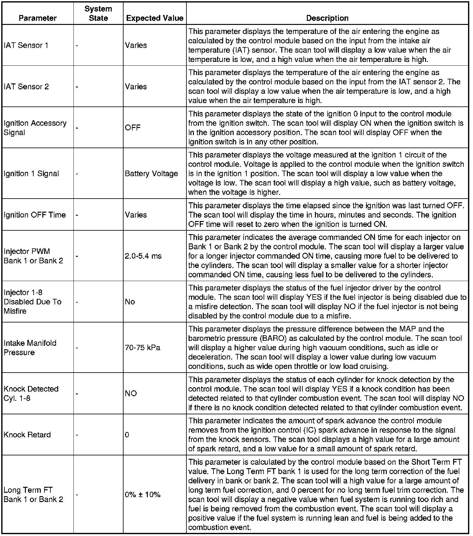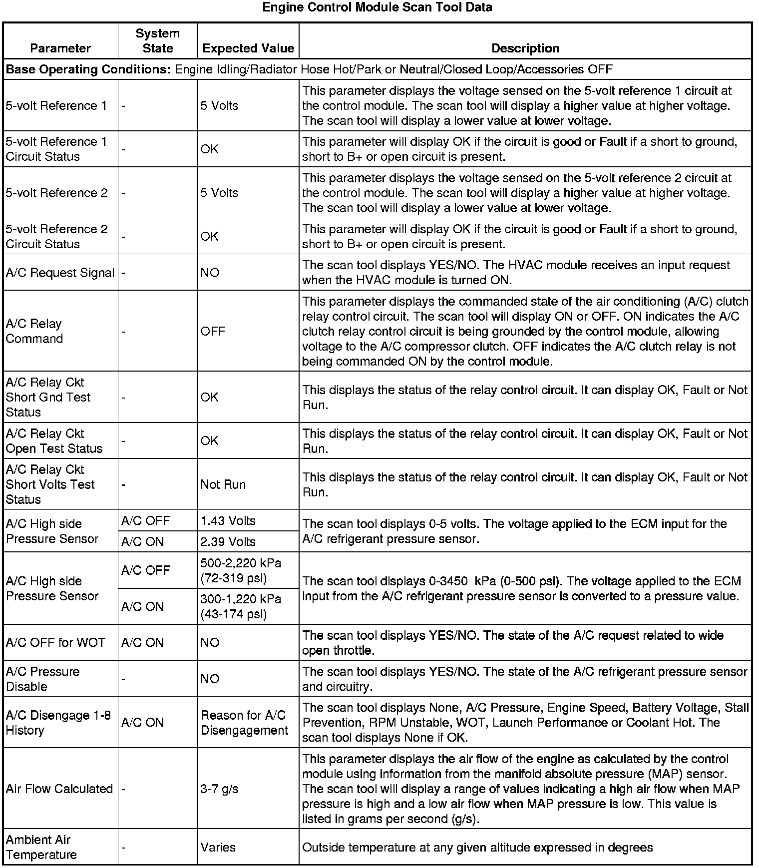 The Engine Control Module Scan Tool Data List contains all engine-related parameters that are available on the scan tool. The list is arranged in alphabetical order. A given parameter may appear in any one of the data lists, and in some cases may appear more than once, or in more than one data list in order to group certain related parameters together.