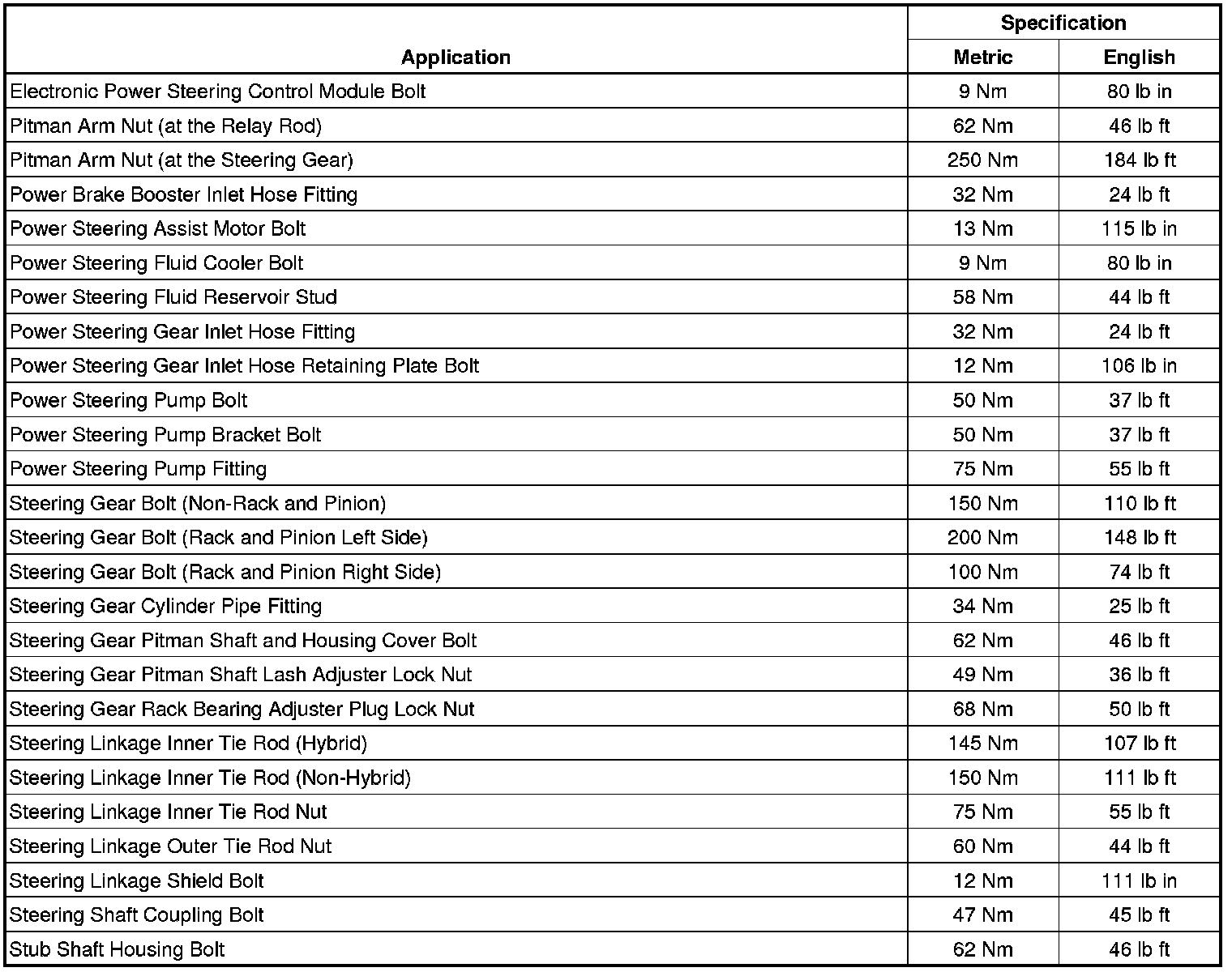 Fastener Tightening Specifications