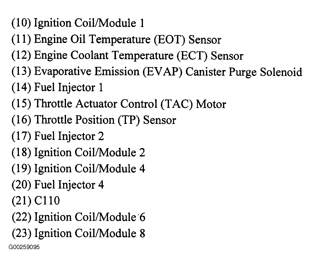 | Ignition Coil/Module 8 | On valve cover, top of respective cylinder. See Figure . |