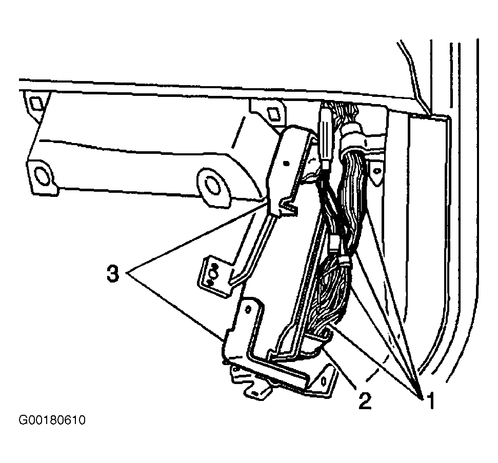 - Swing the PCM (2) with bracket (3) up into position under the IP. See Figure .
