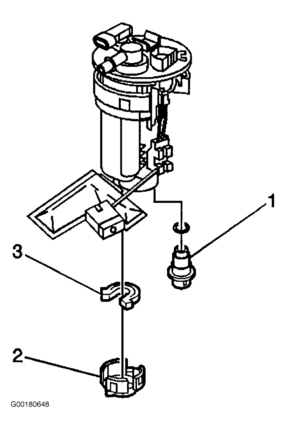 3. Position the lower cushion (3) on bottom of fuel pump, and install the lower cap (2) to the sender assembly until the cap locks into place. See Figure .