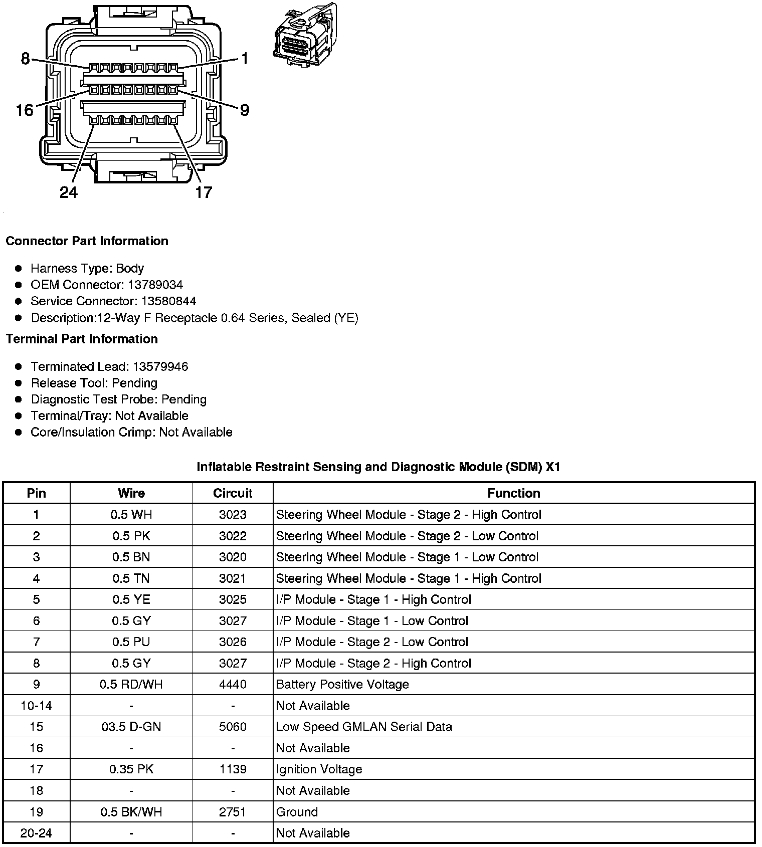 Inflatable Restraint Sensing and Diagnostic Module (SDM) X1
