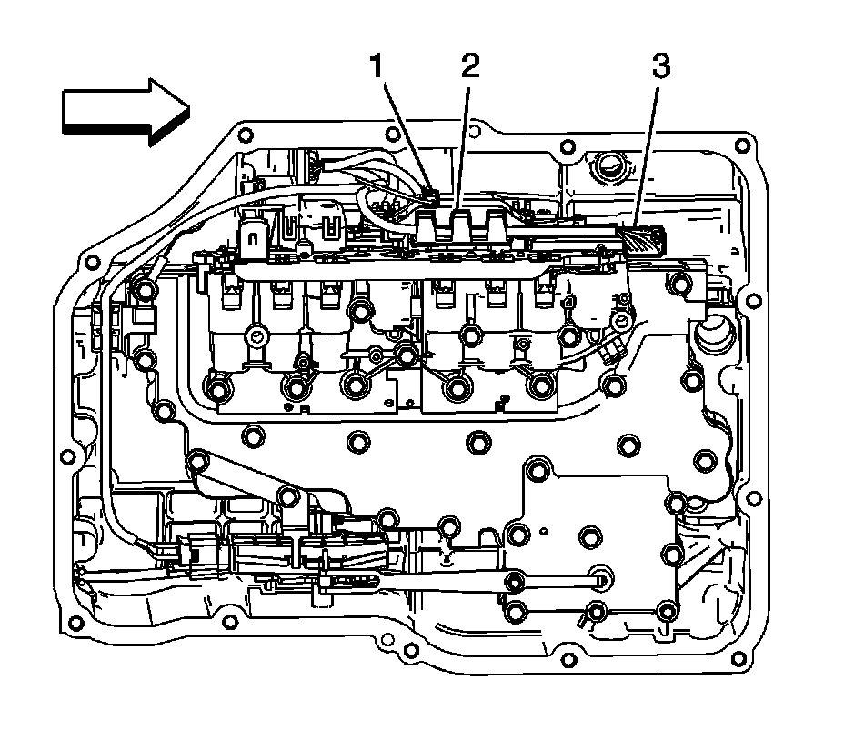 1. Remove the transmission fluid filter and auxiliary fluid pump filter. Refer to Automatic Transmission Fluid Filter and Auxiliary Fluid Pump Filter Replacement Automatic Transmission Fluid Filter and Auxiliary Fluid Pump Filter Replacement.
