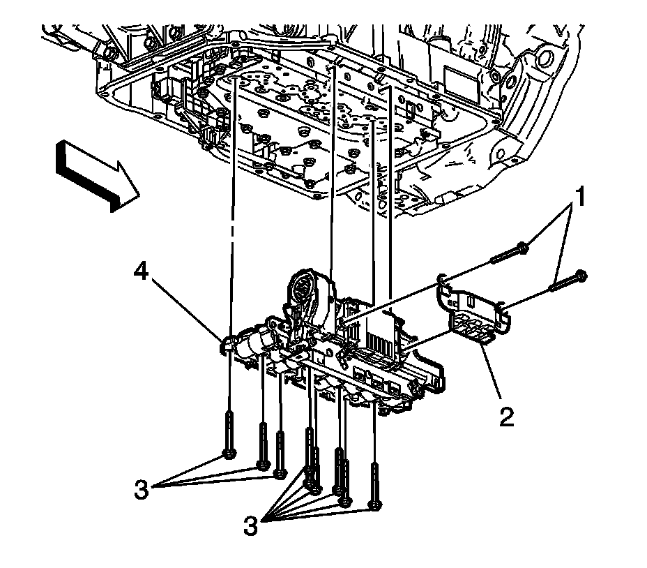 4. Install by hand the control valve body bolts (3) to the control solenoid valve and TCM assembly.