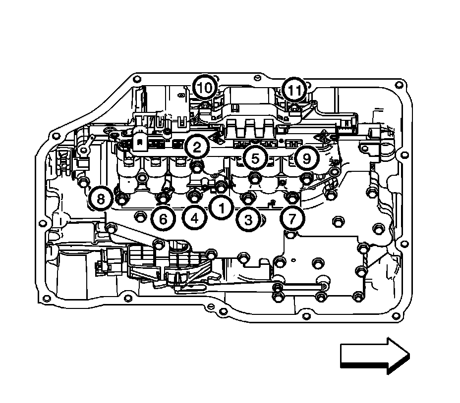 Caution: Bolt torque sequencing is critical to the proper function of the control solenoid valve assembly. Failure to follow the required sequencing may result in transmission malfunction.