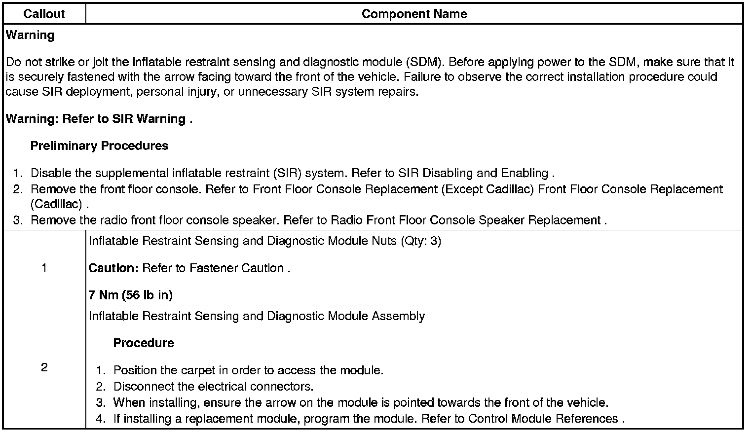 Inflatable Restraint Sensing and Diagnostic Module Replacement