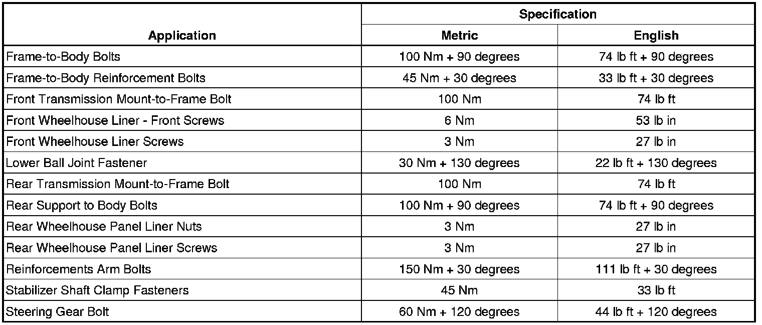 Fastener Tightening Specifications