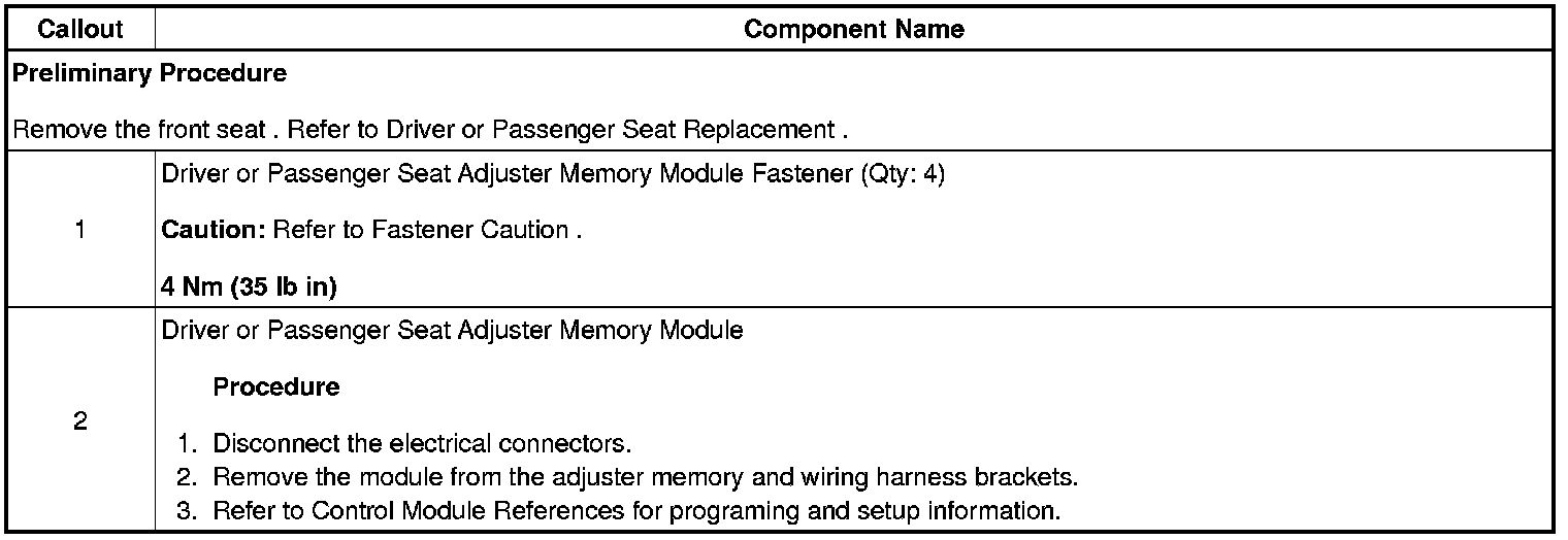 Driver or Passenger Seat Adjuster Memory Module Replacement