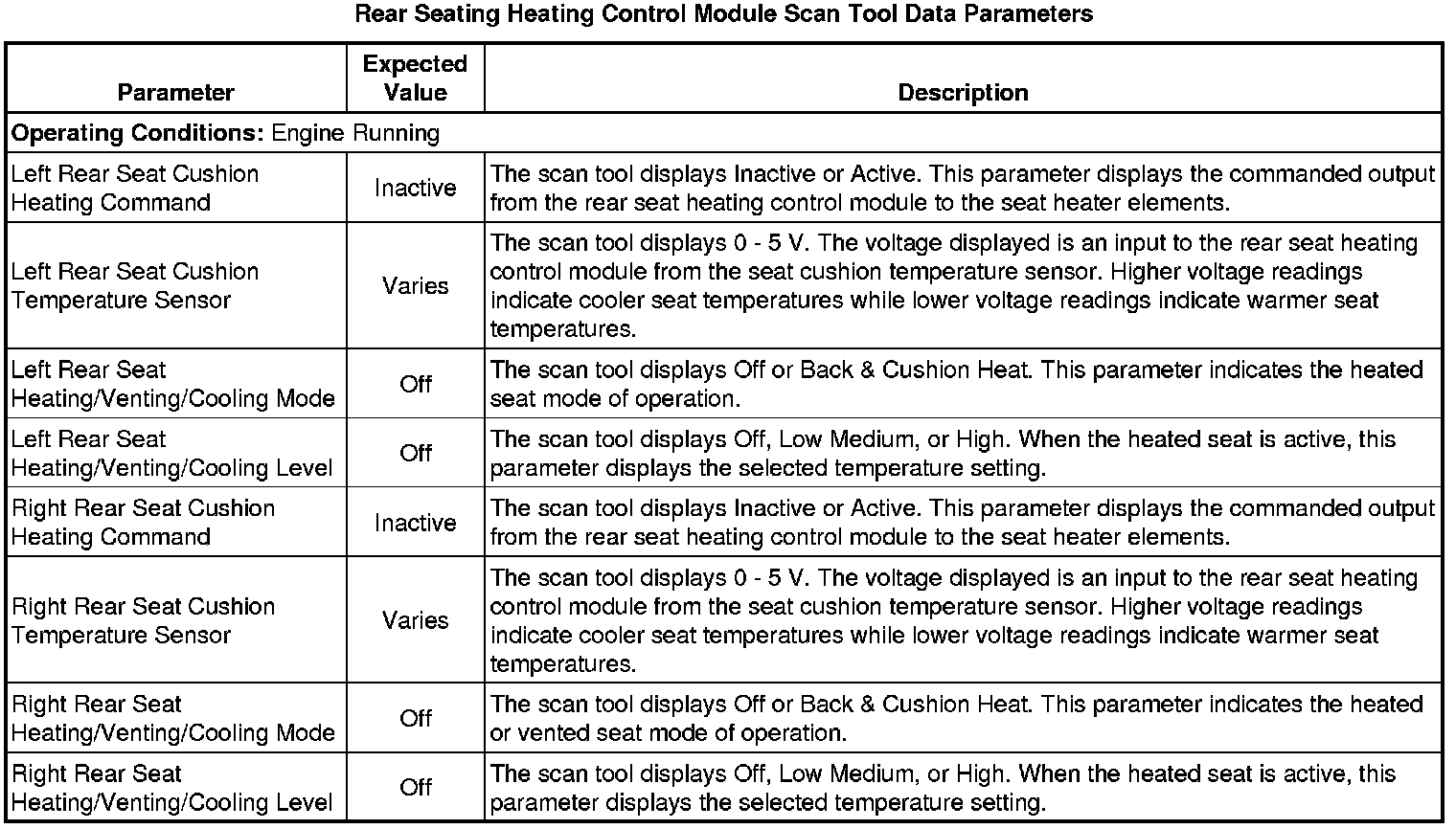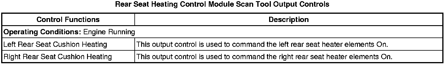 Rear Seat Heater Control Module Scan Tool Information