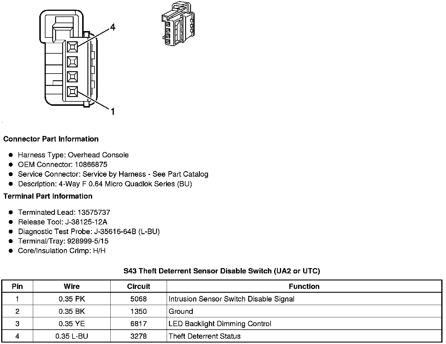 S43 Theft Deterrent Sensor Disable Switch (UA2 or UTC)