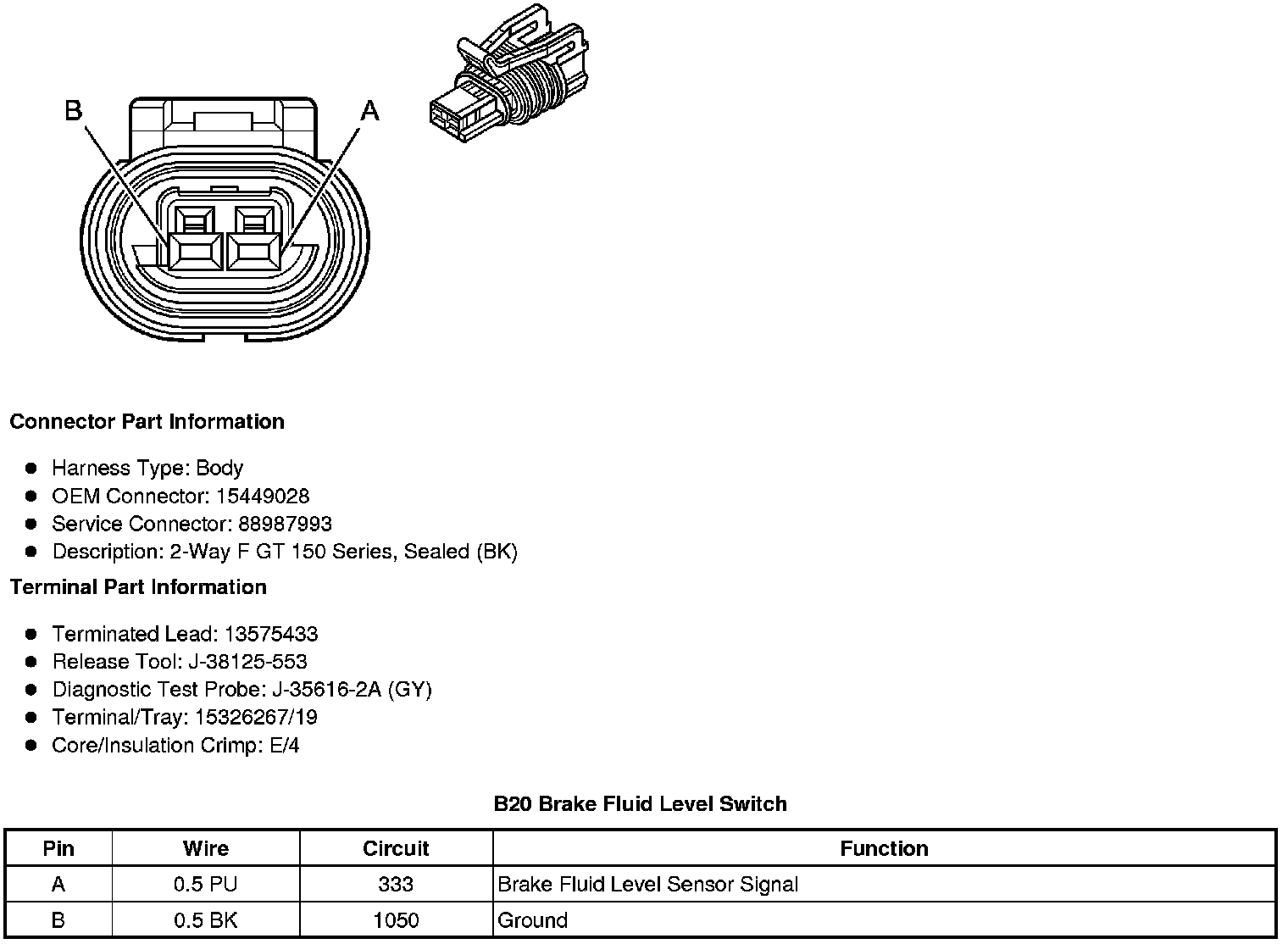 B20 Brake Fluid Level Switch