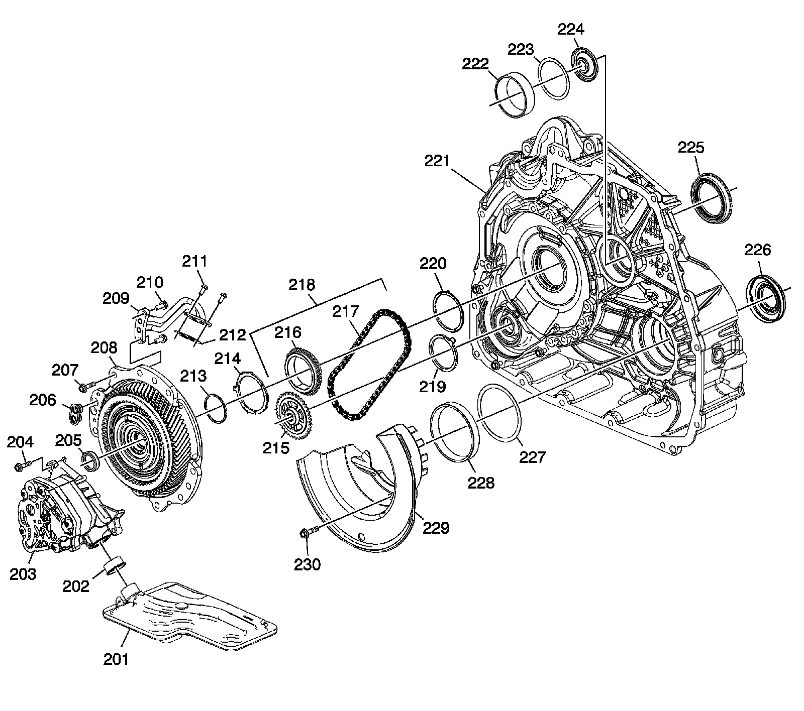 206 - Front Differential Transfer Drive Gear Support Torque Converter Fluid Seal Assembly