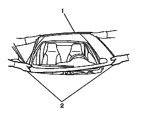 4. Remove the interior windshield pillar garnish moldings. Refer to Windshield Garnish Molding Replacement Windshield Garnish Molding Replacement.