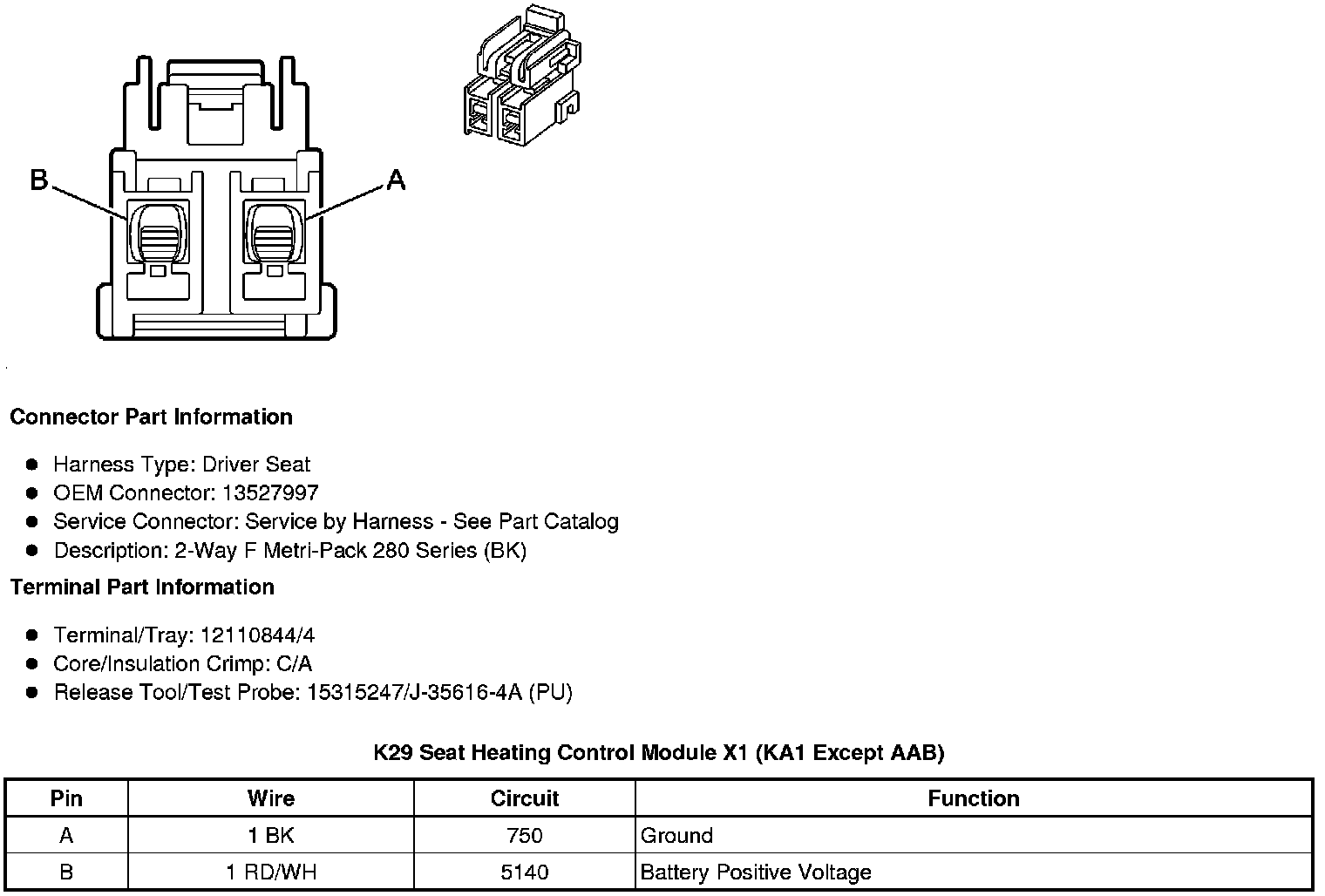 K29 Seat Heating Control Module X1 (KA1 Except AAB)