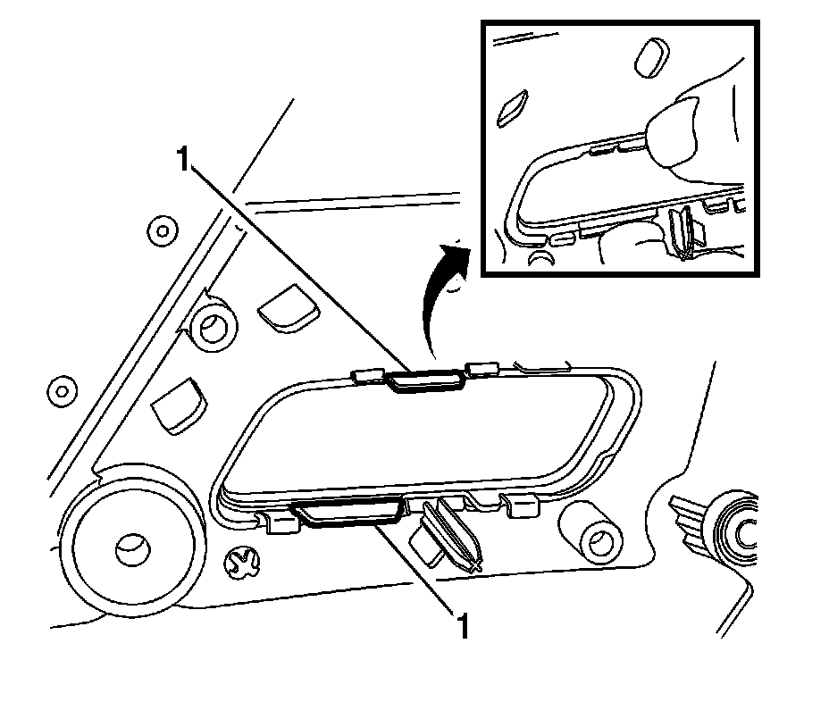 5. Using your finger and thumb, compress the side tabs (1) and push the bezel out through the opening of the trim panel. This will also release the escutcheon from the trim panel.
