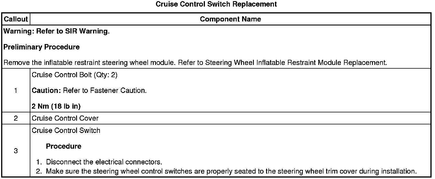 Cruise Control Switch: Service and Repair