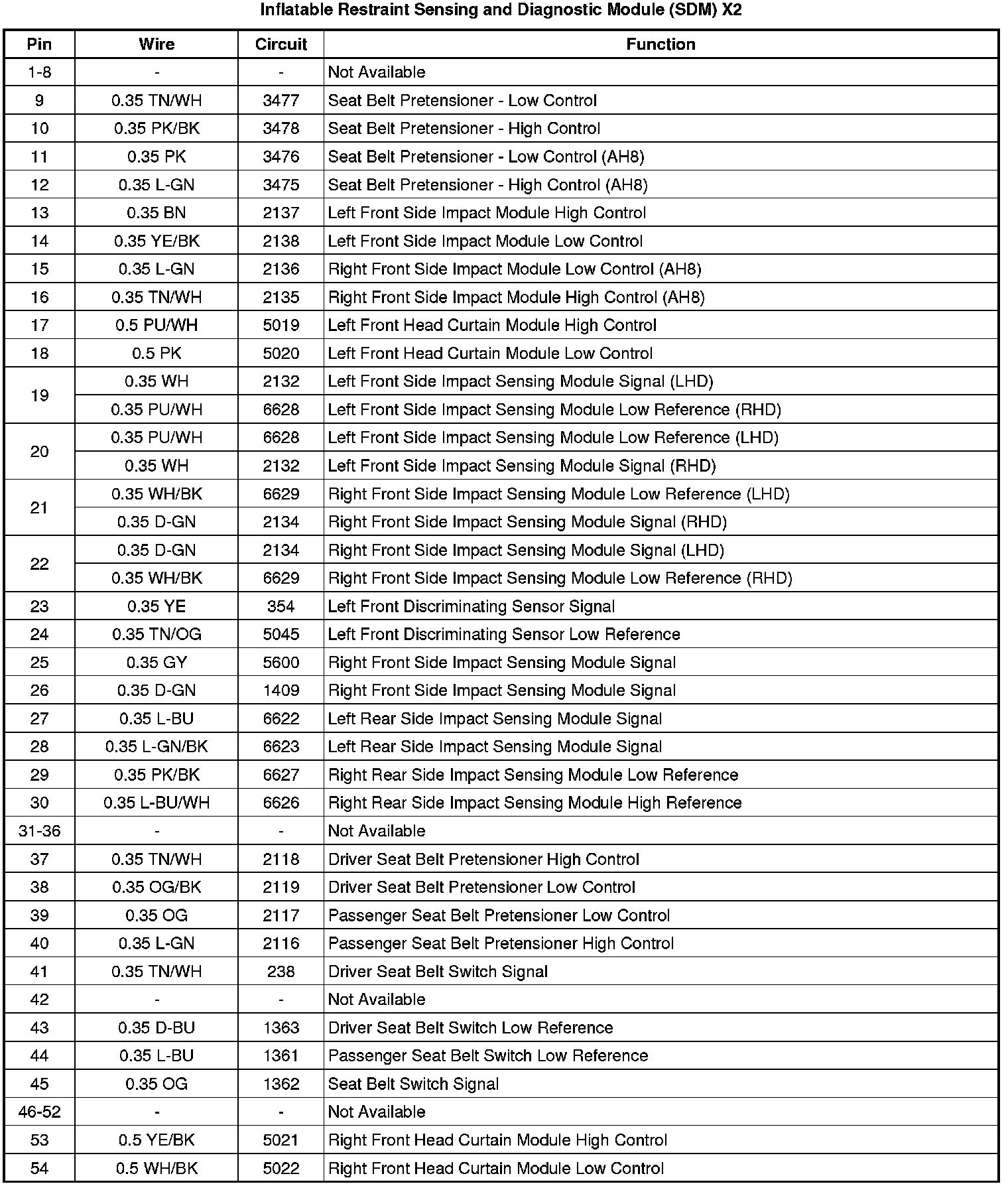 Inflatable Restraint Sensing and Diagnostic Module (SDM) X2