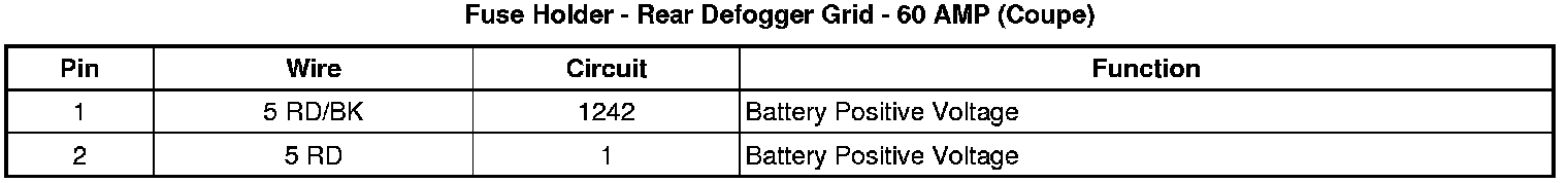 Fuse Holder - Rear Defogger Grid - 60 AMP (Coupe)