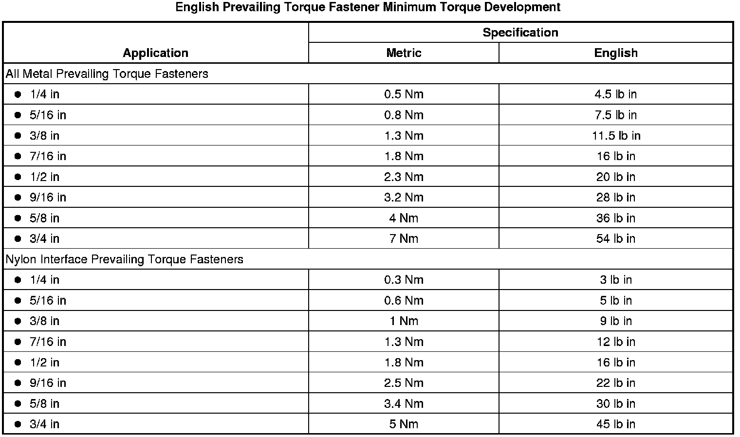 This vehicle provides fastener dimensions using the metric system. Most metric fasteners are approximate in diameter to equivalent English fasteners. Make replacements using fasteners of the same nominal diameter, thread pitch, and strength.