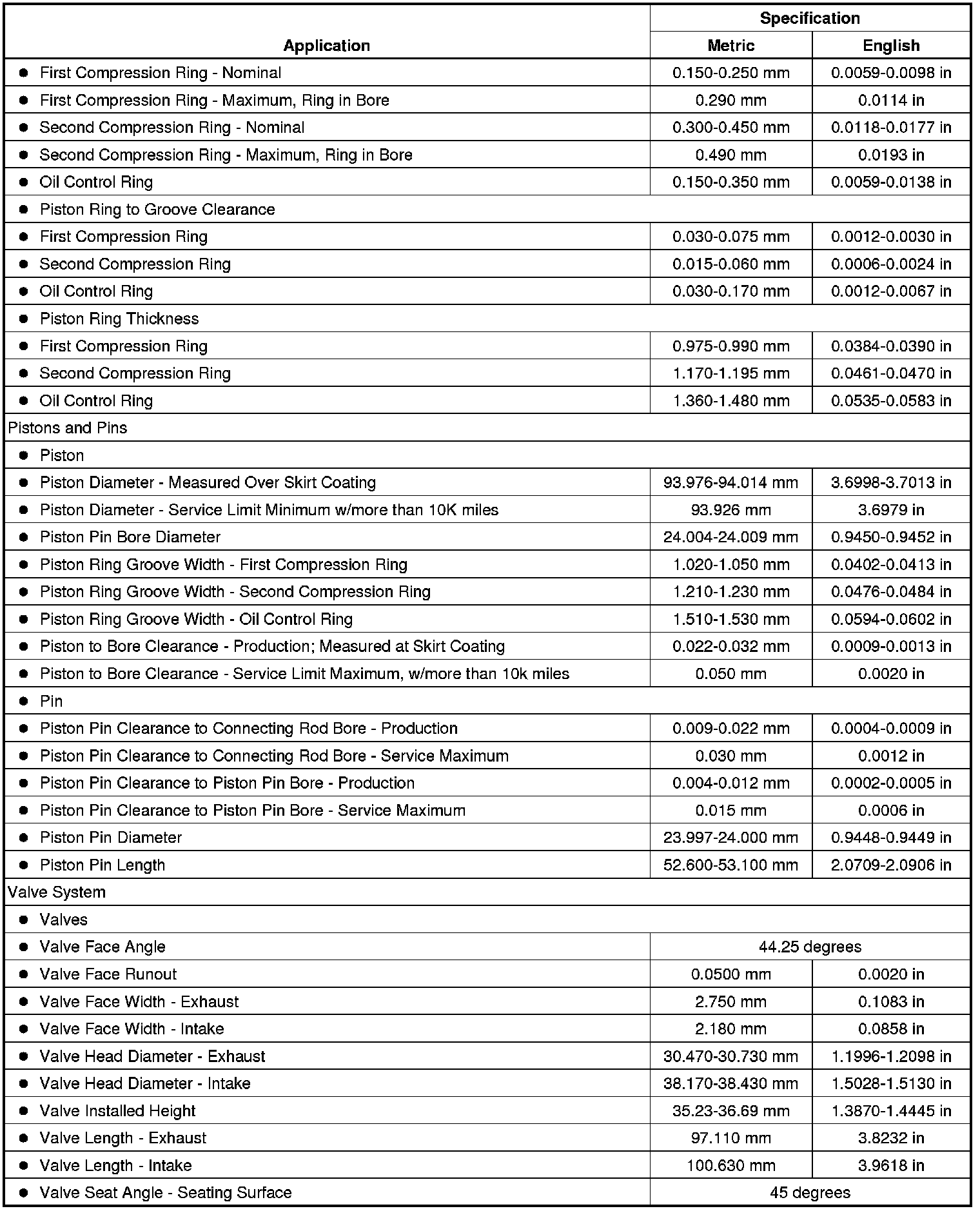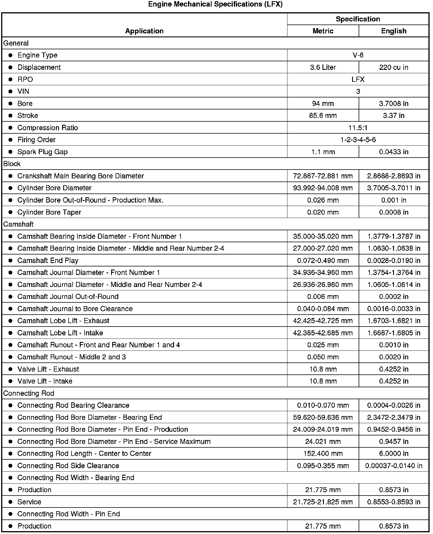 Engine Mechanical Specifications (LFX)