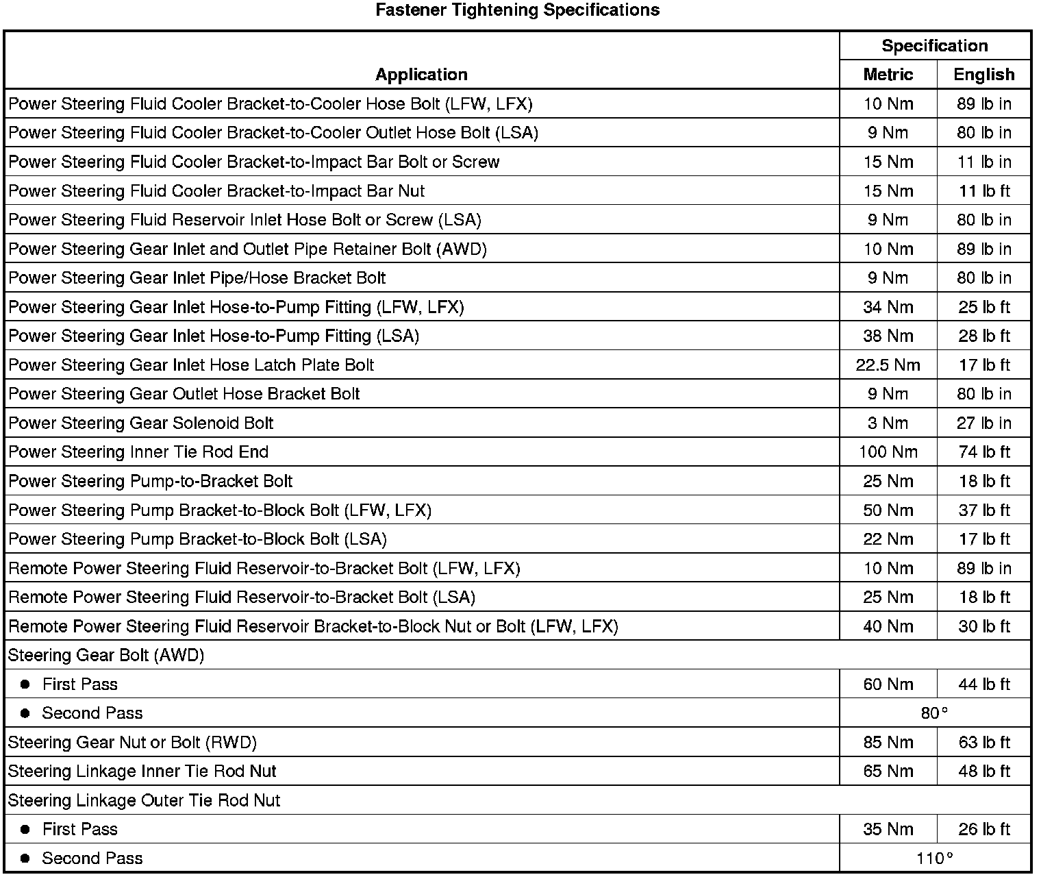 Fastener Tightening Specifications