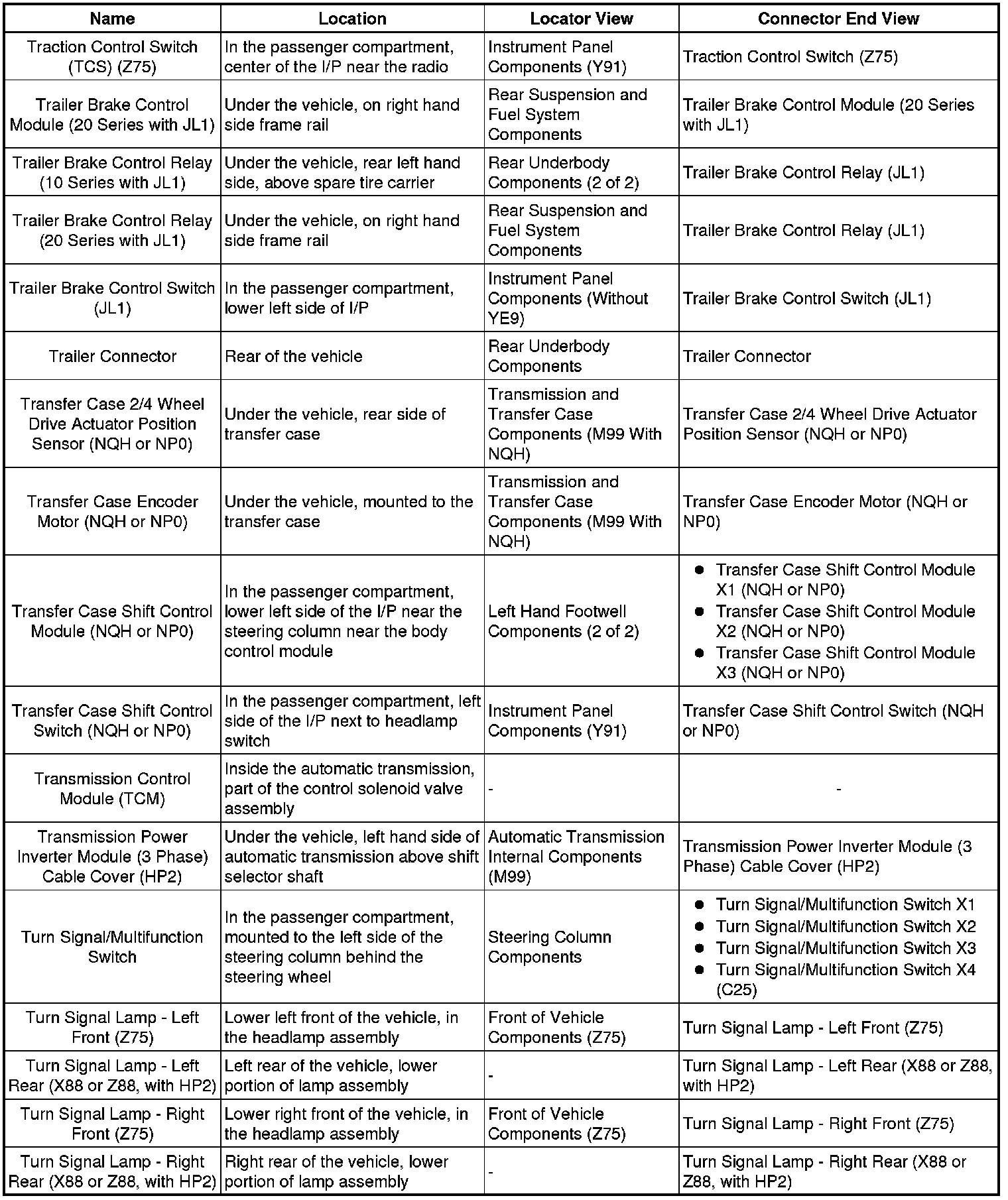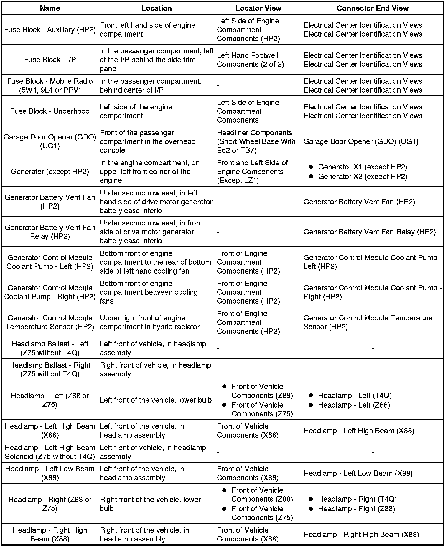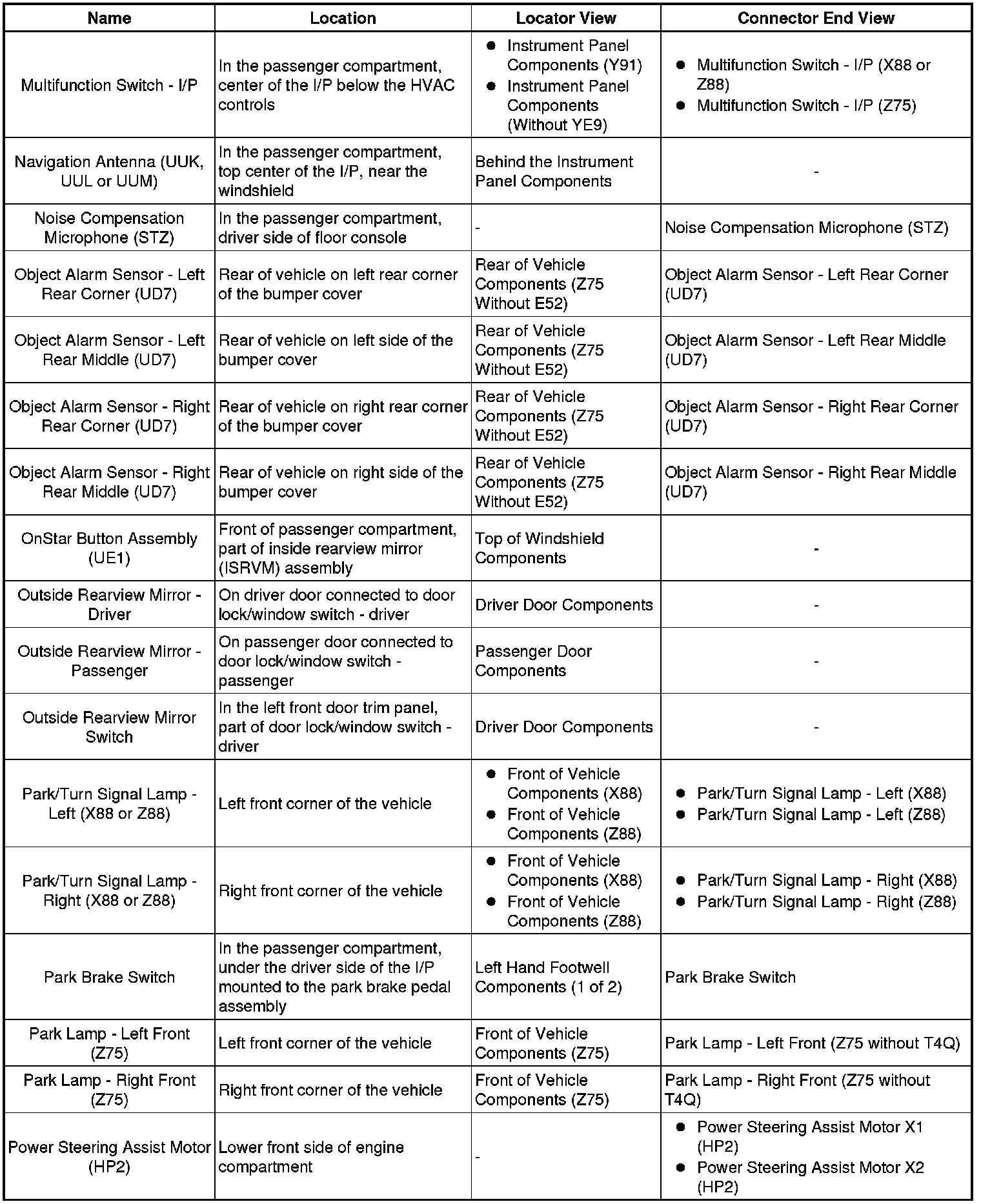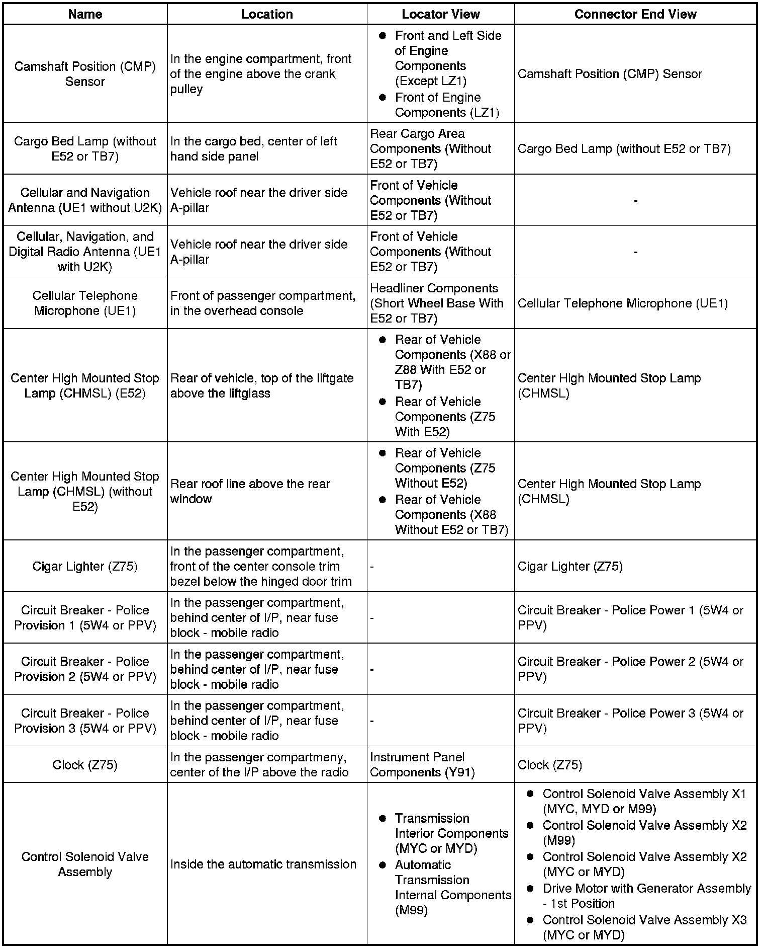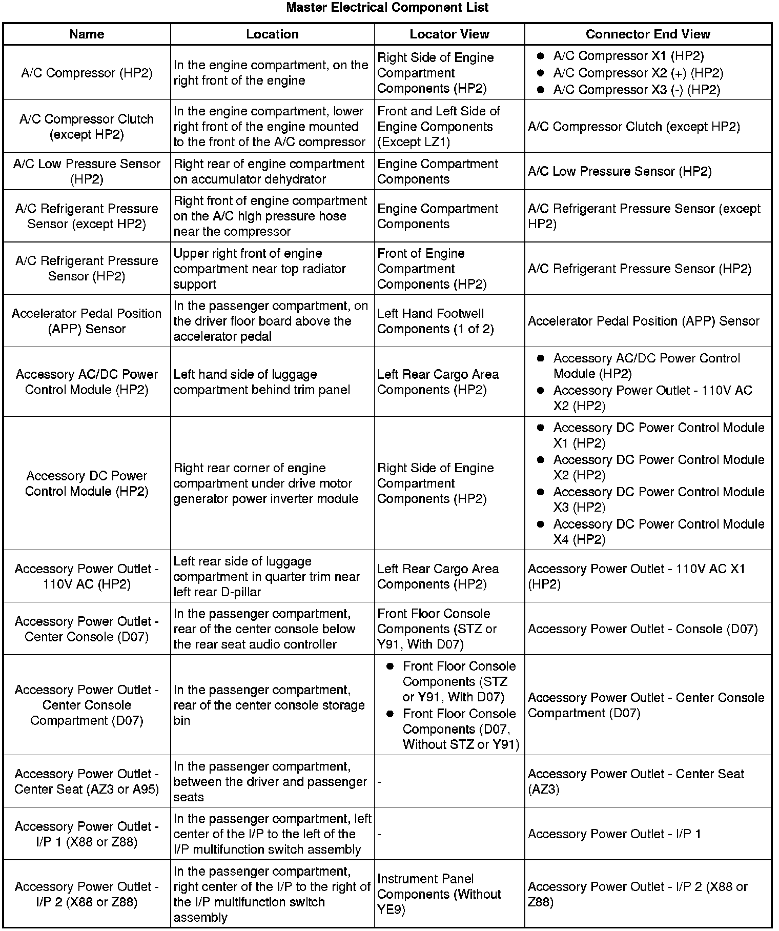 Master Electrical Component List