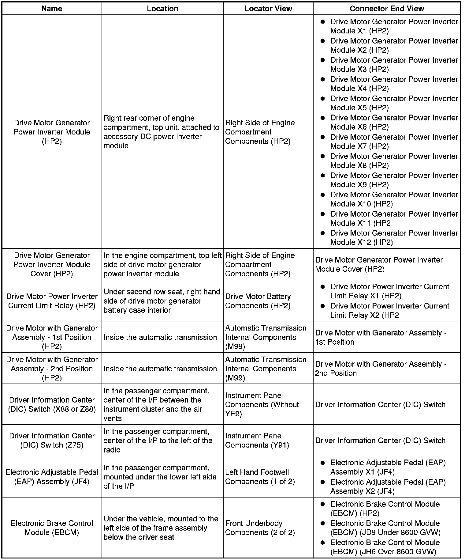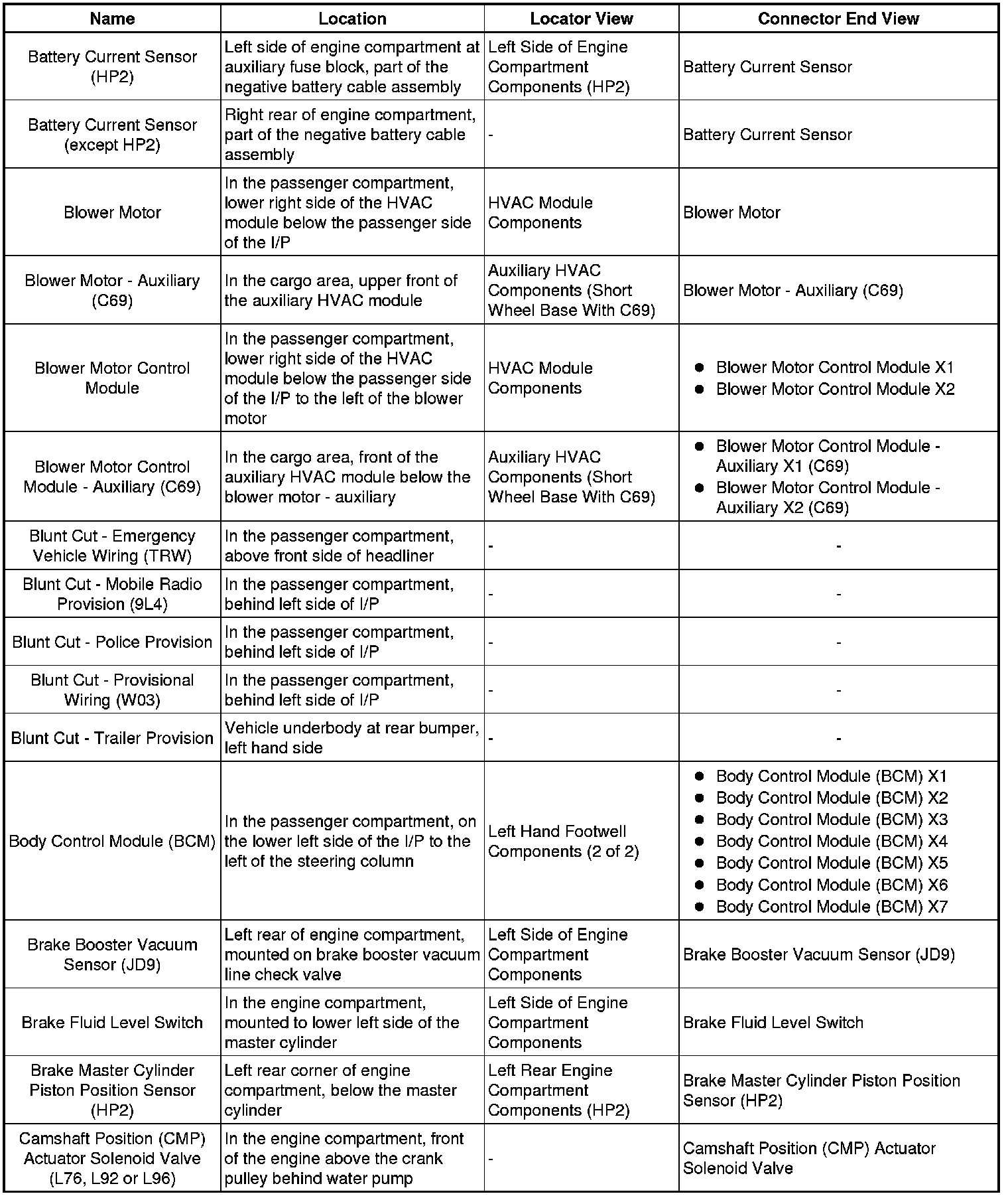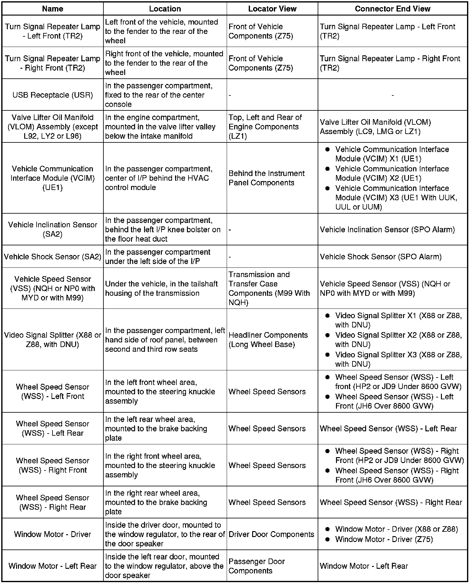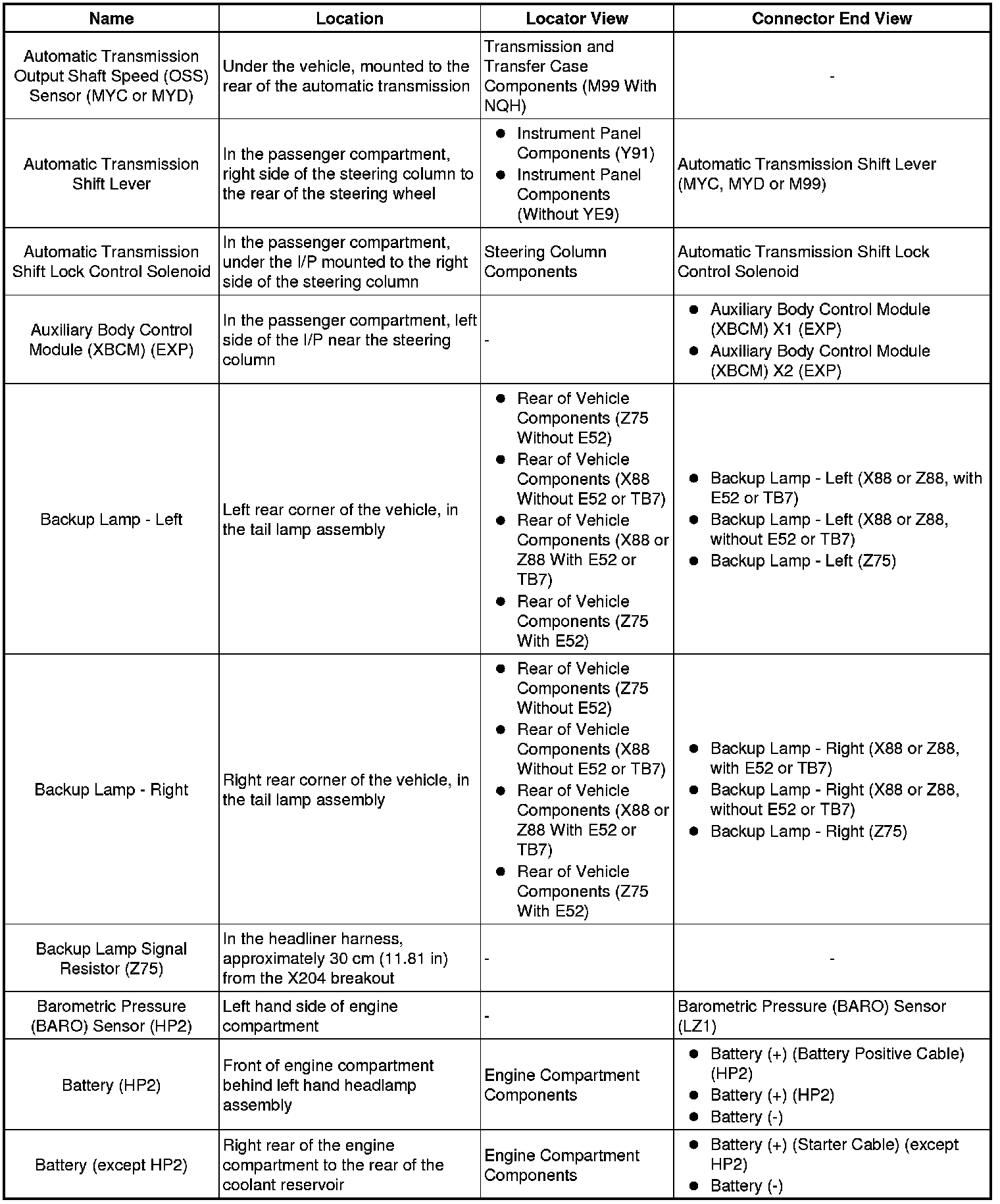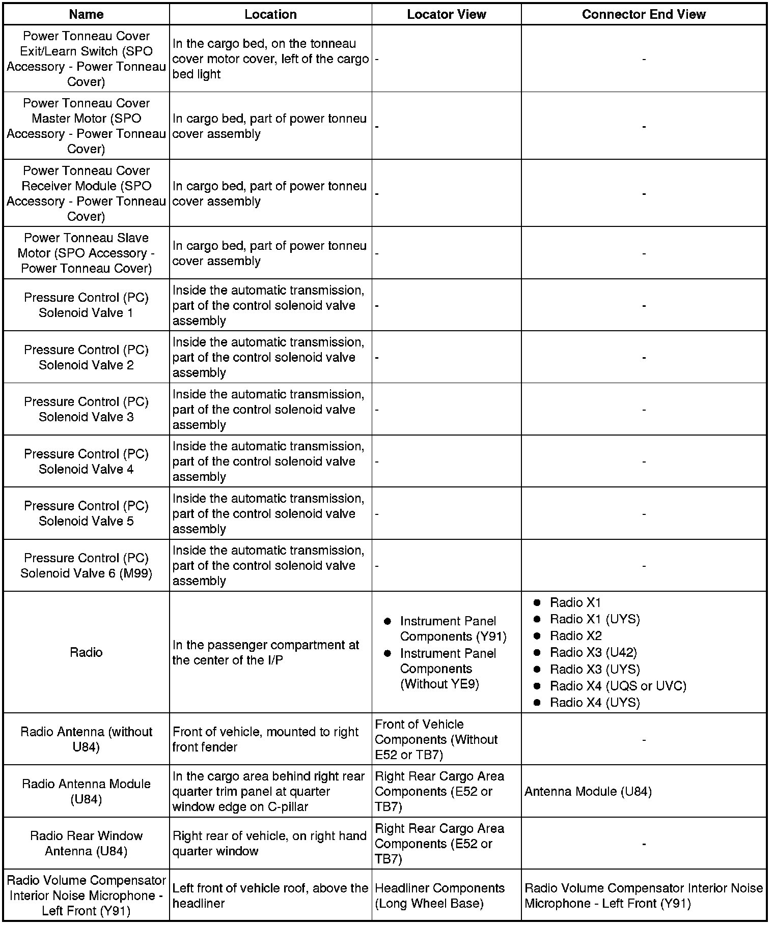 Master Electrical Component List