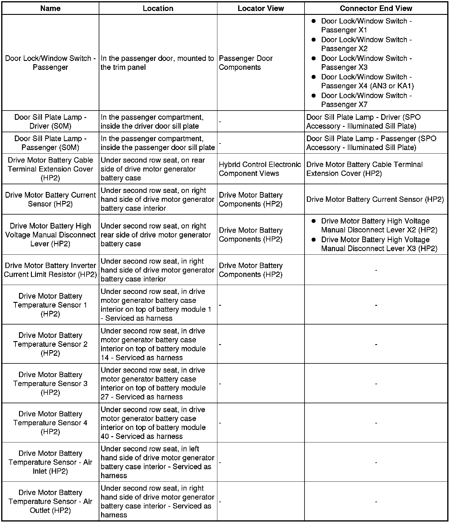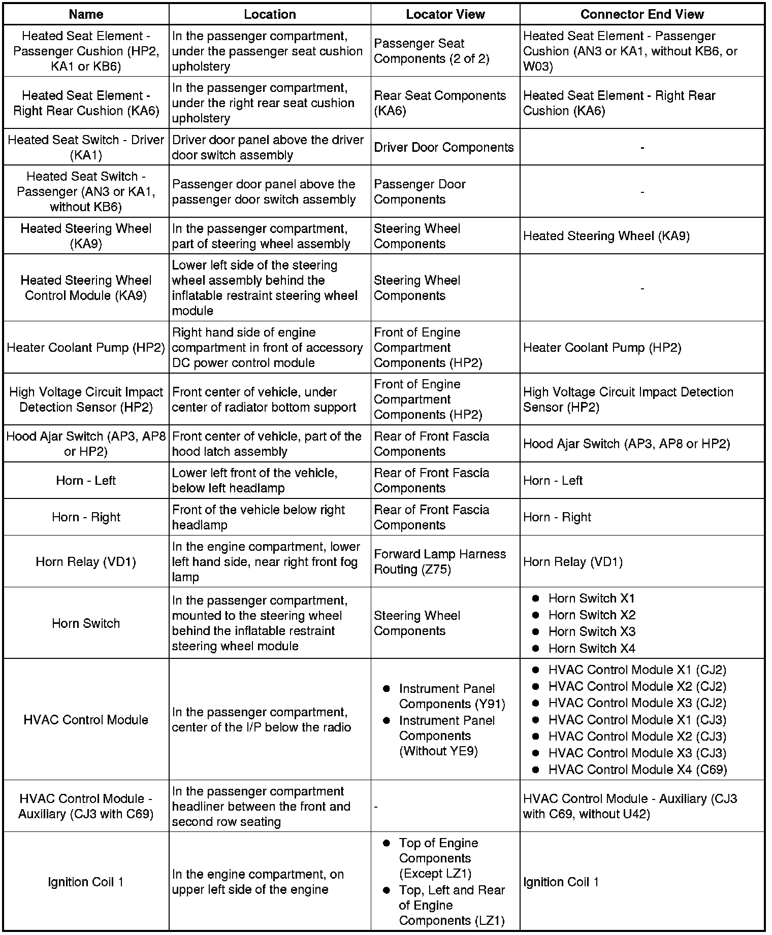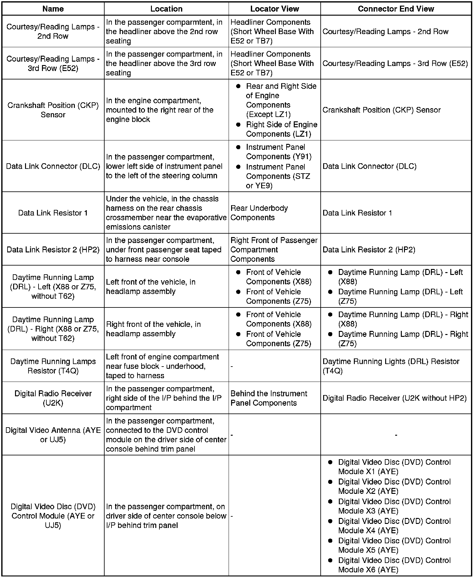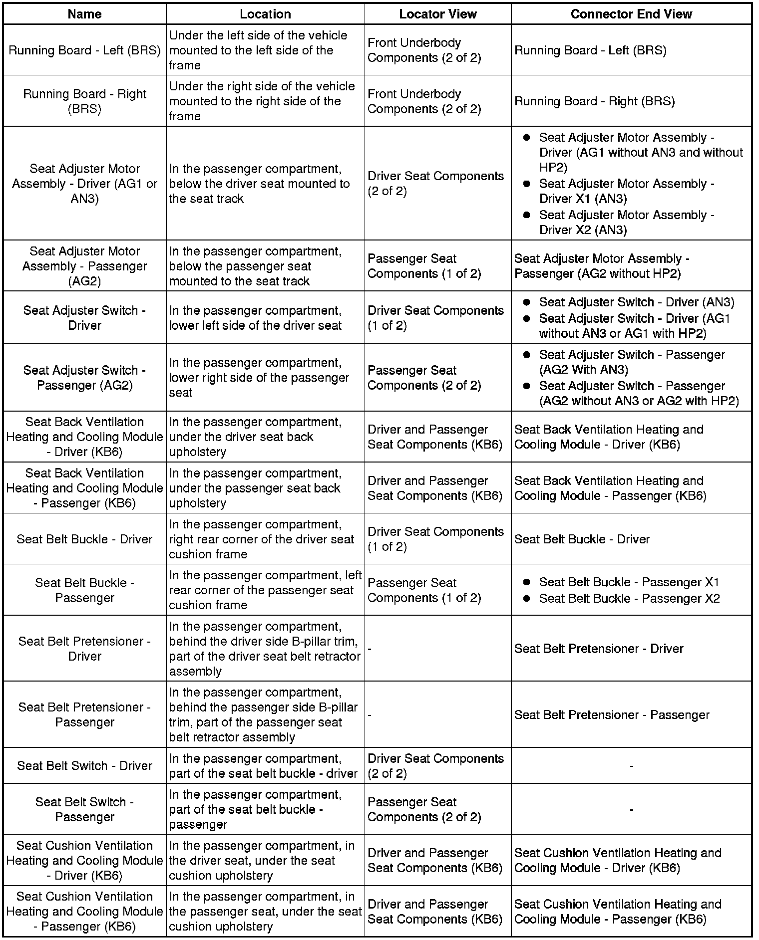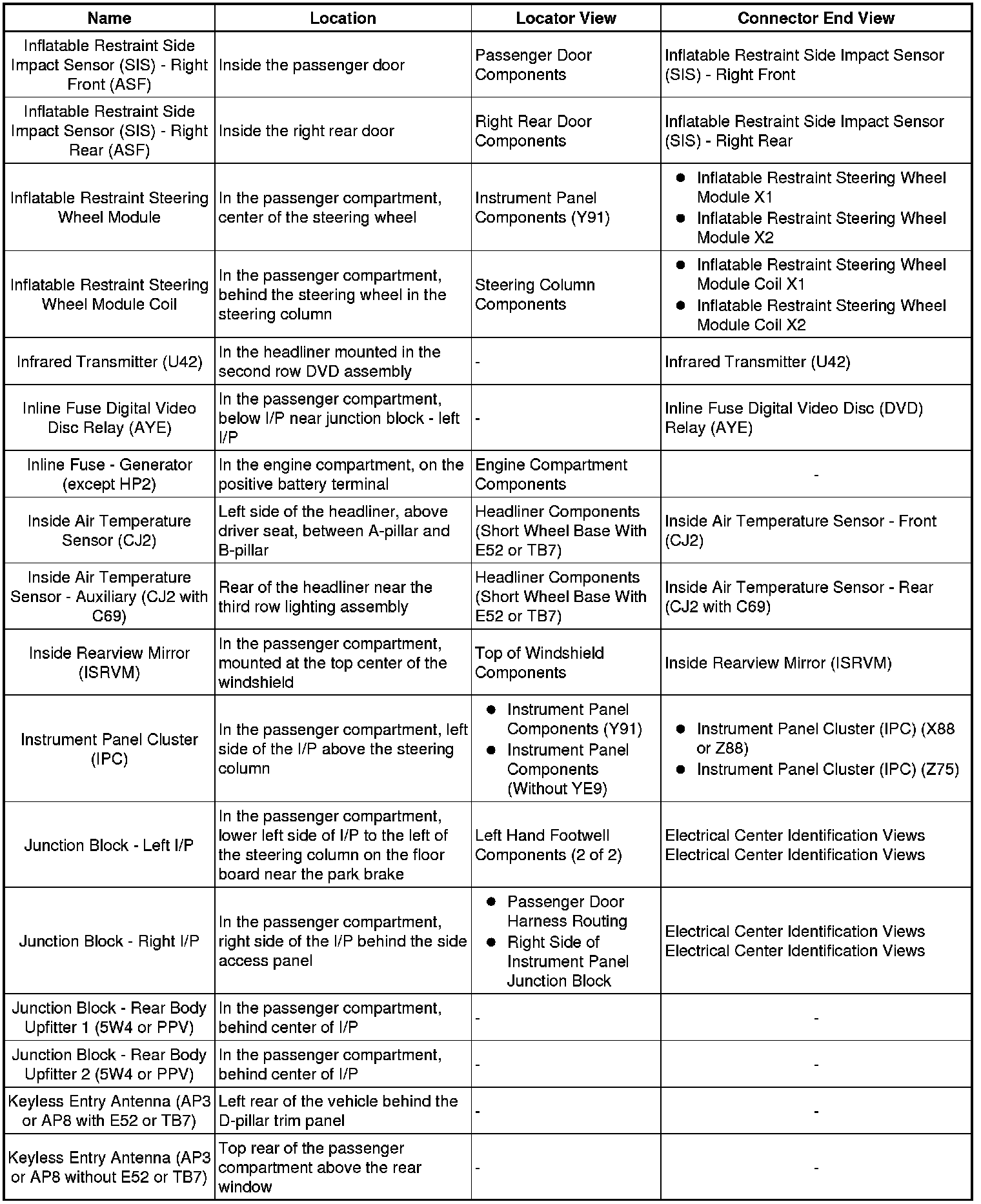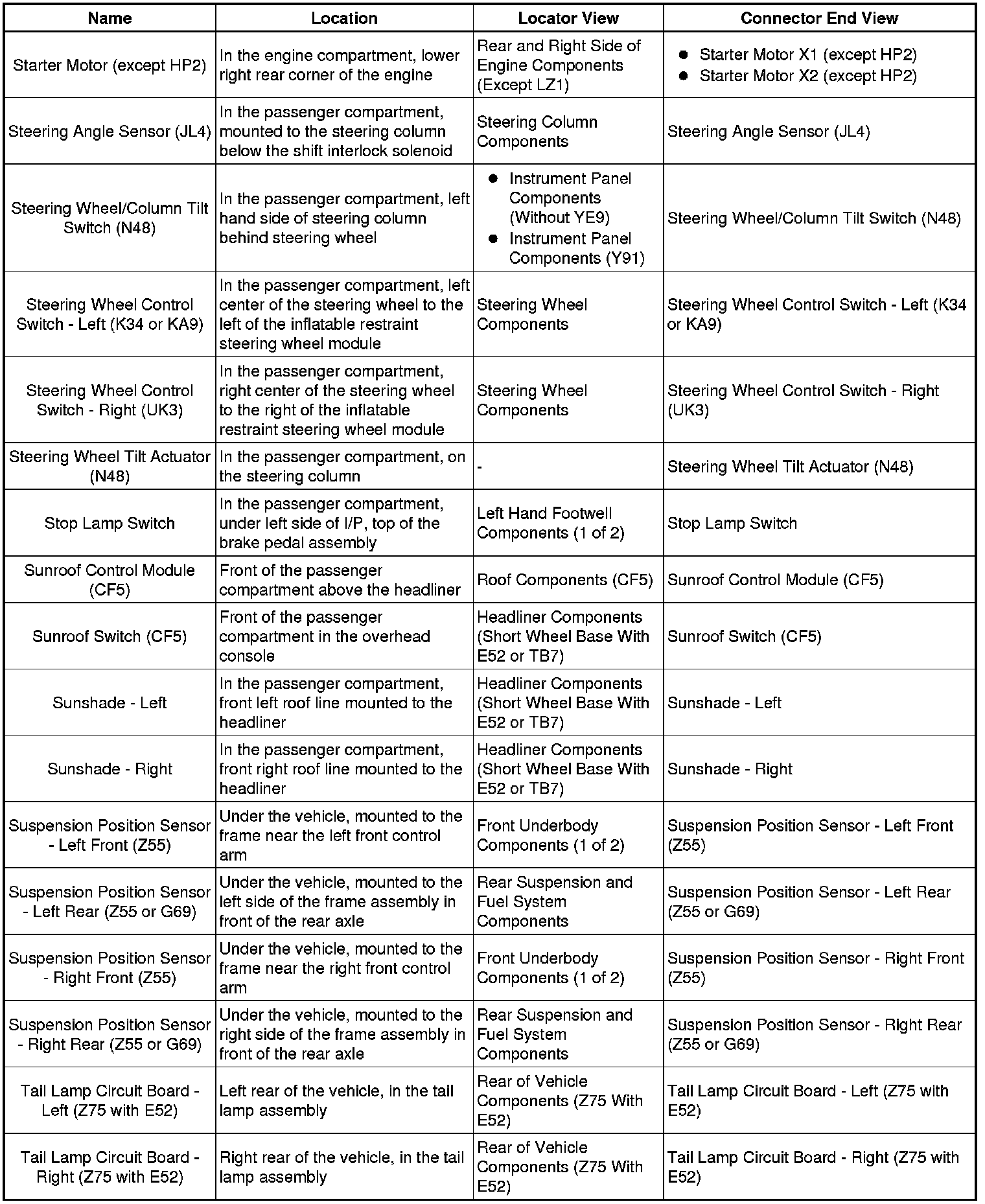 Master Electrical Component List