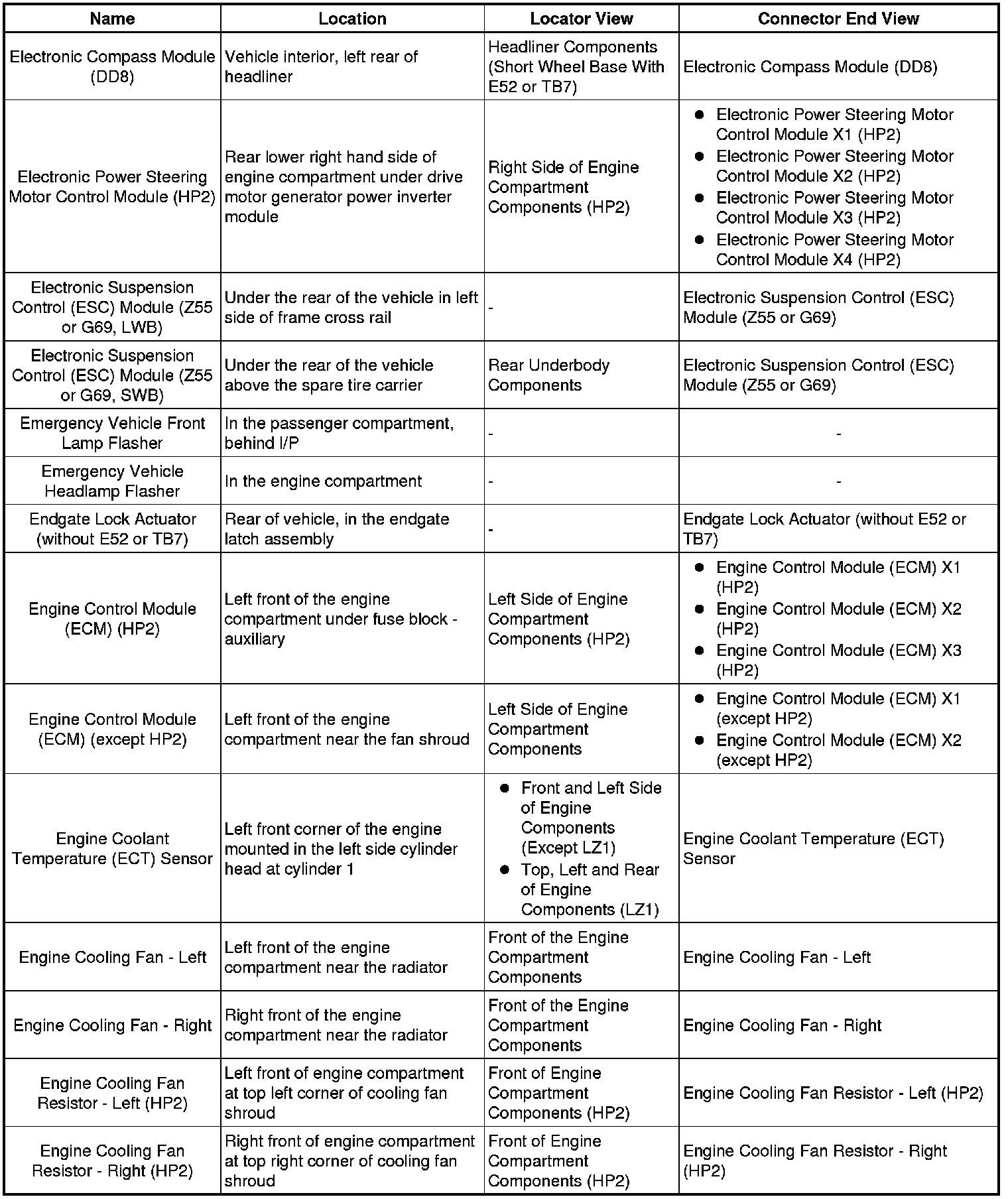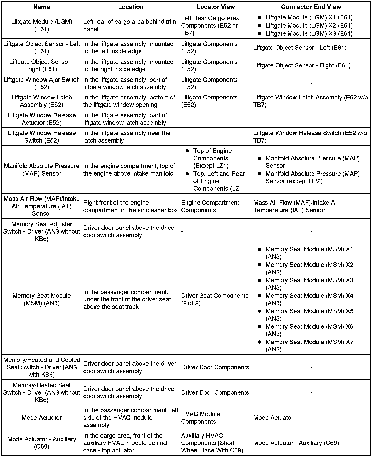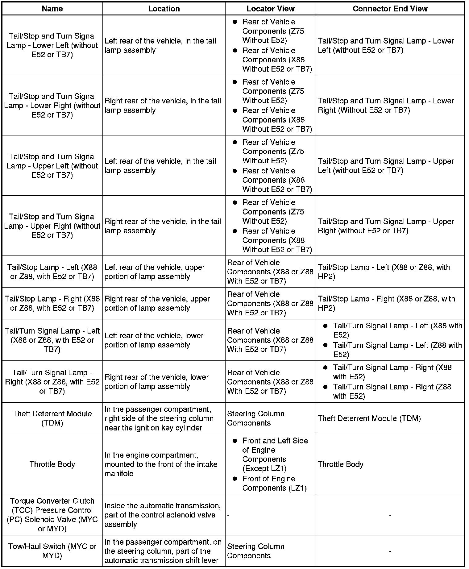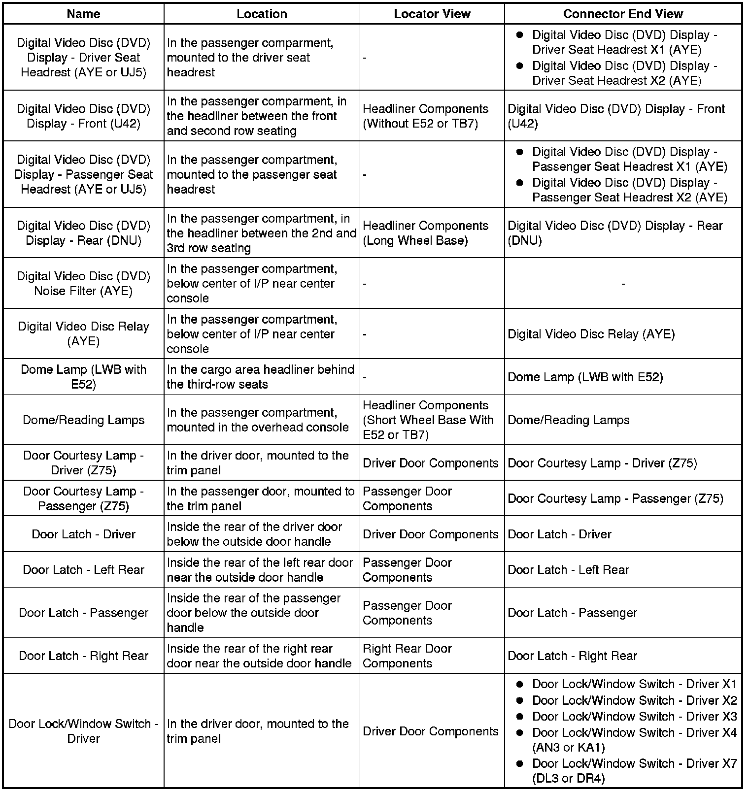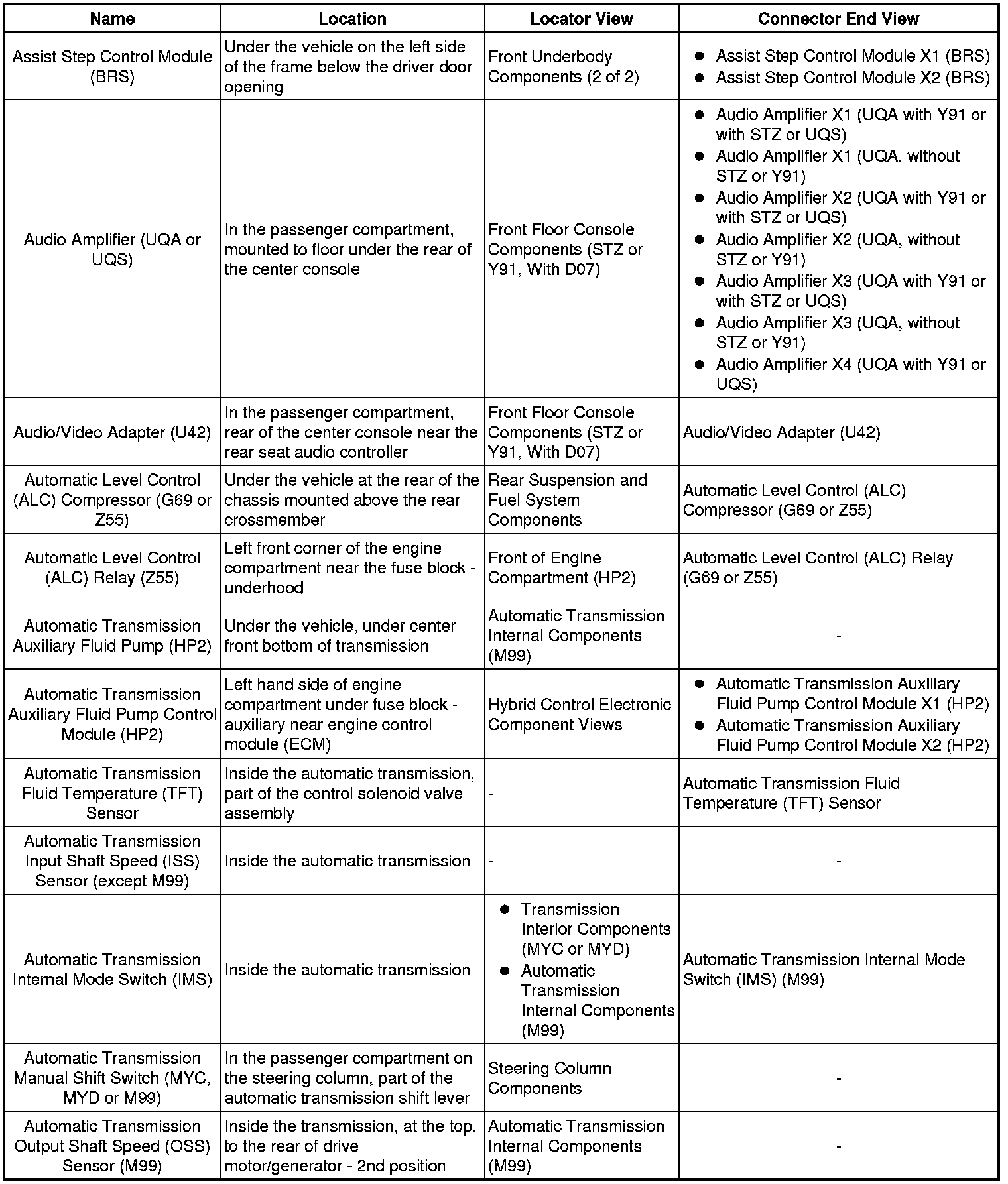 Master Electrical Component List