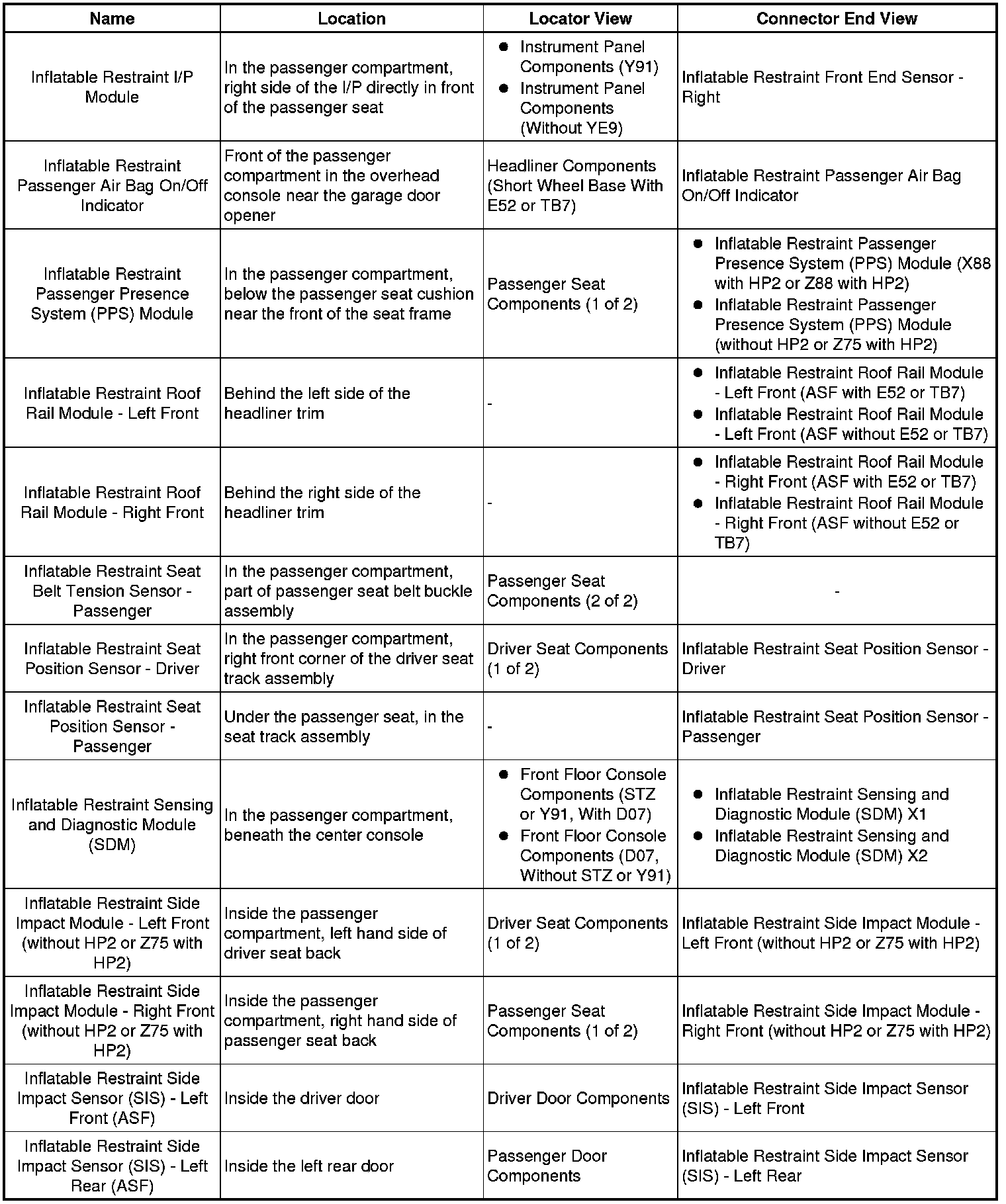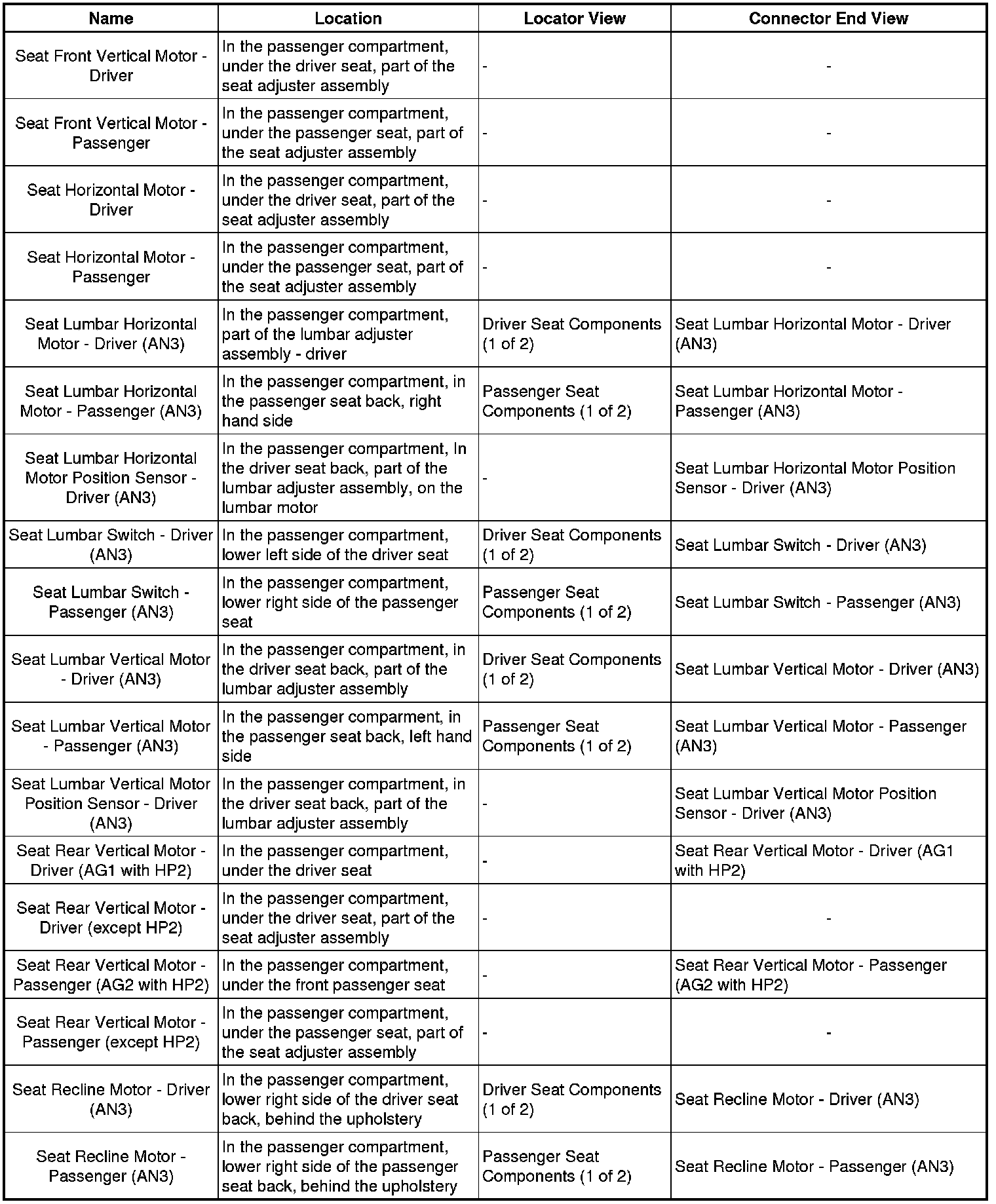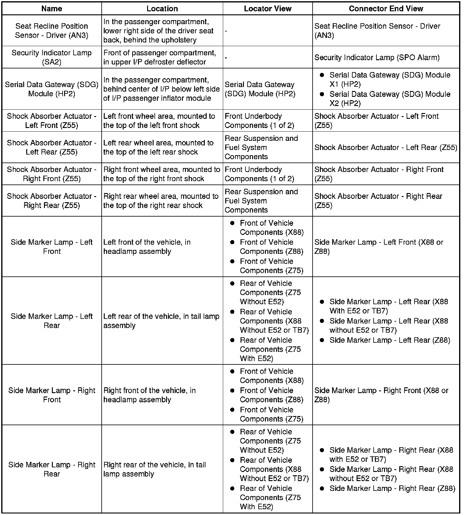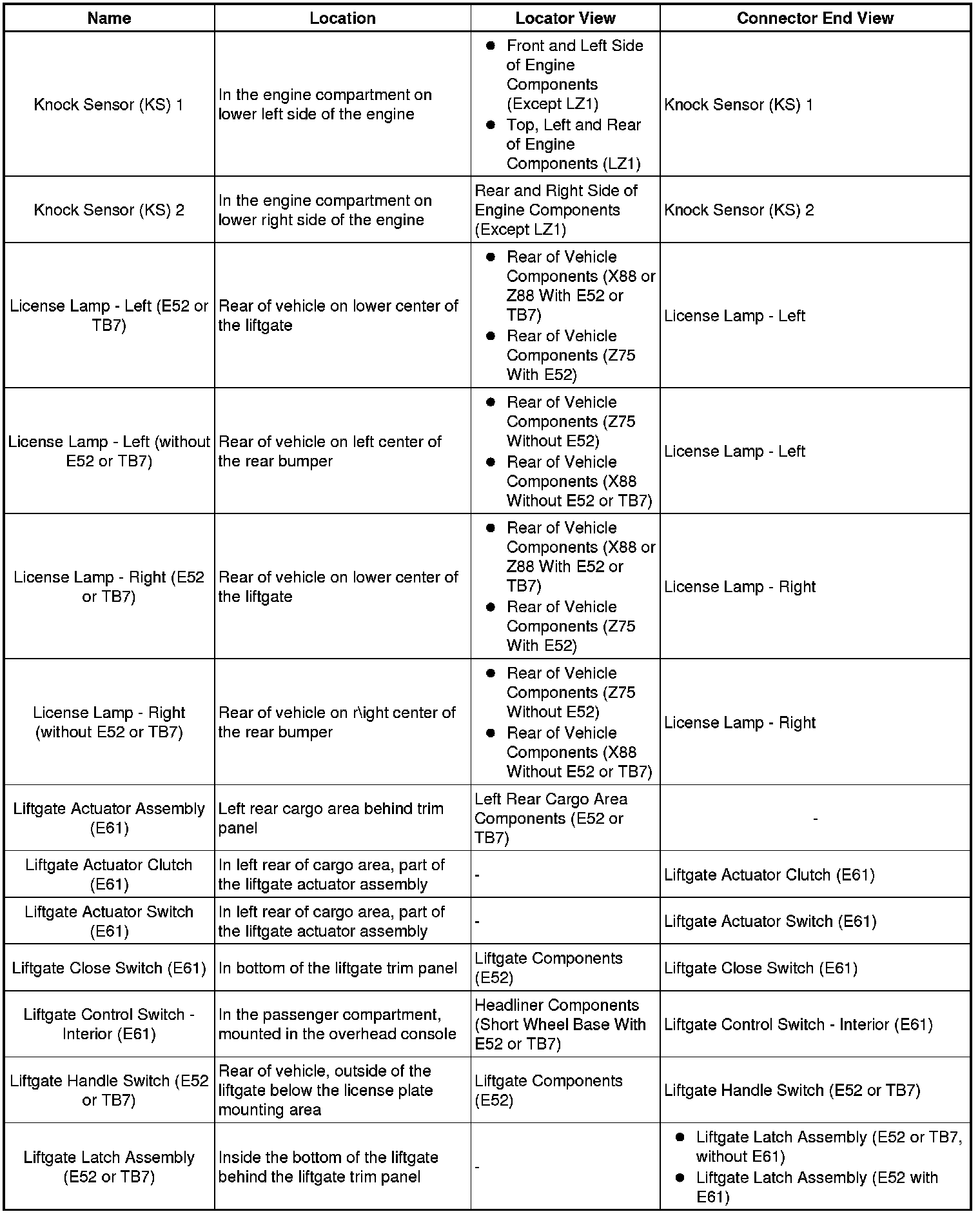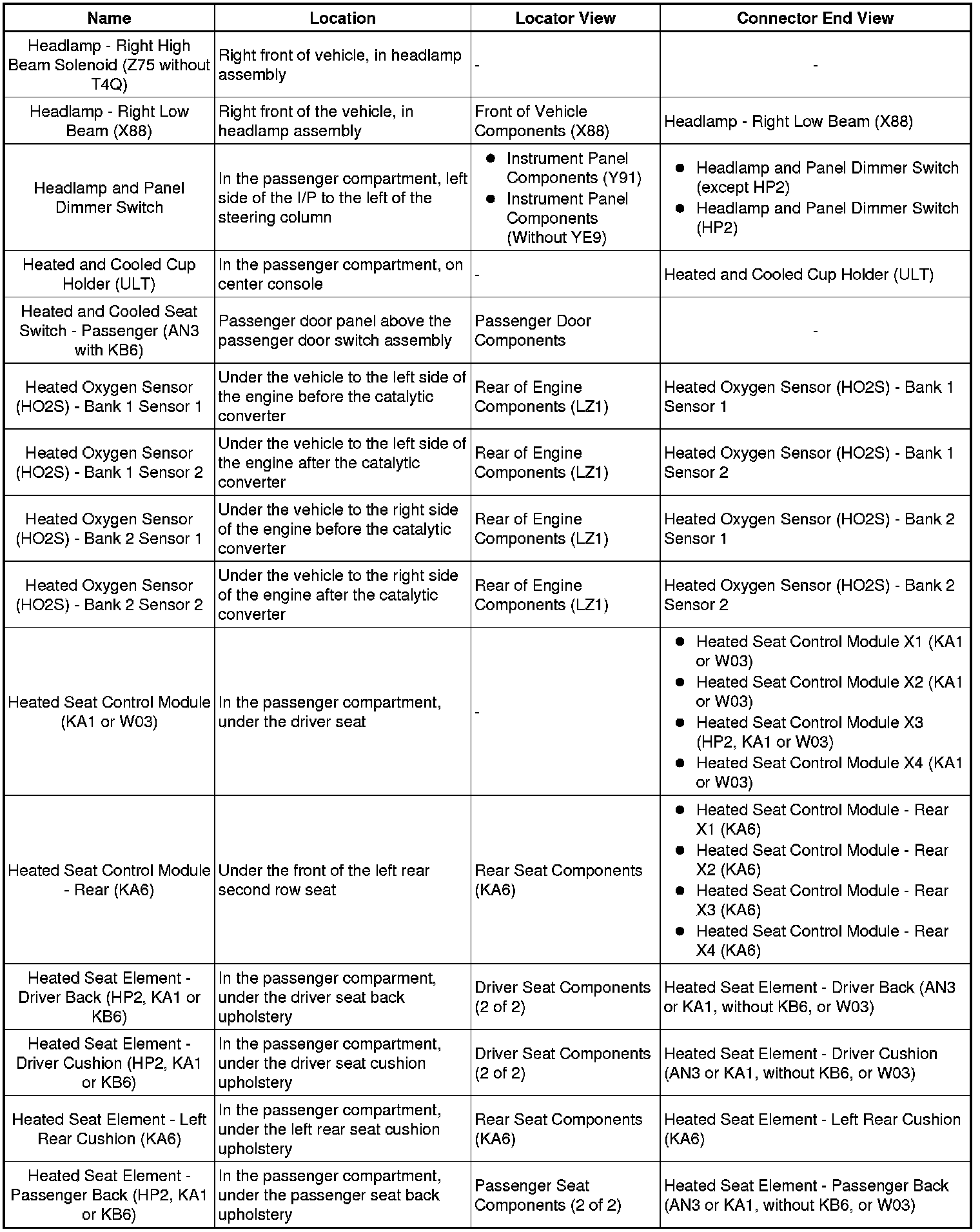 Master Electrical Component List