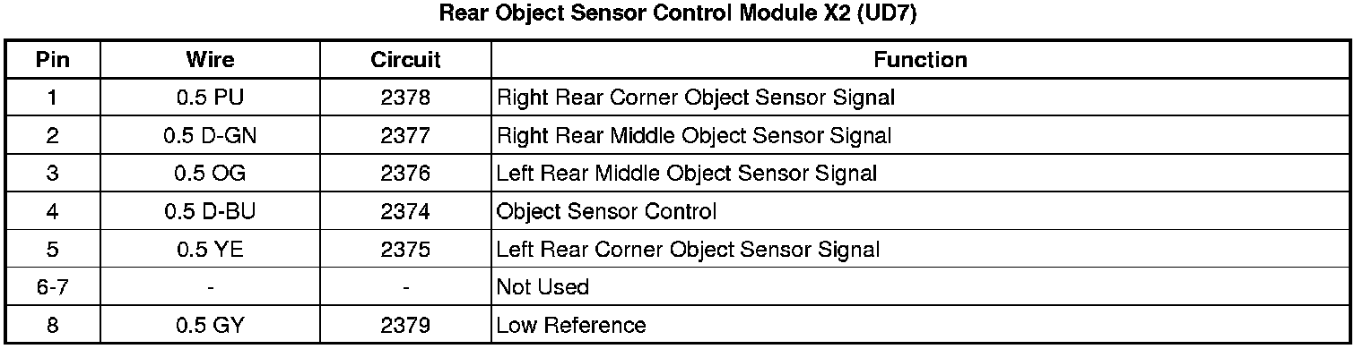 Rear Object Sensor Control Module X2 (UD7)