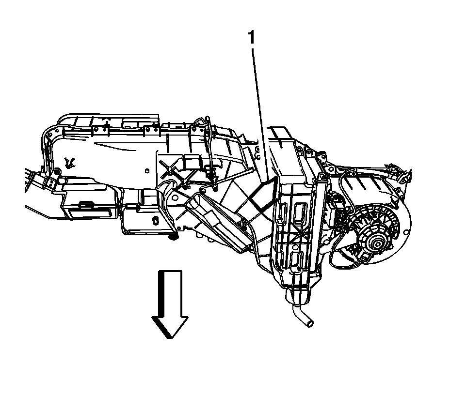 Caution: Extreme care must be taken when drilling into the air conditioning and heater case module. Misalignment of the hole can cause damage to the air conditioning evaporator or temperature door requiring replacement of these components.